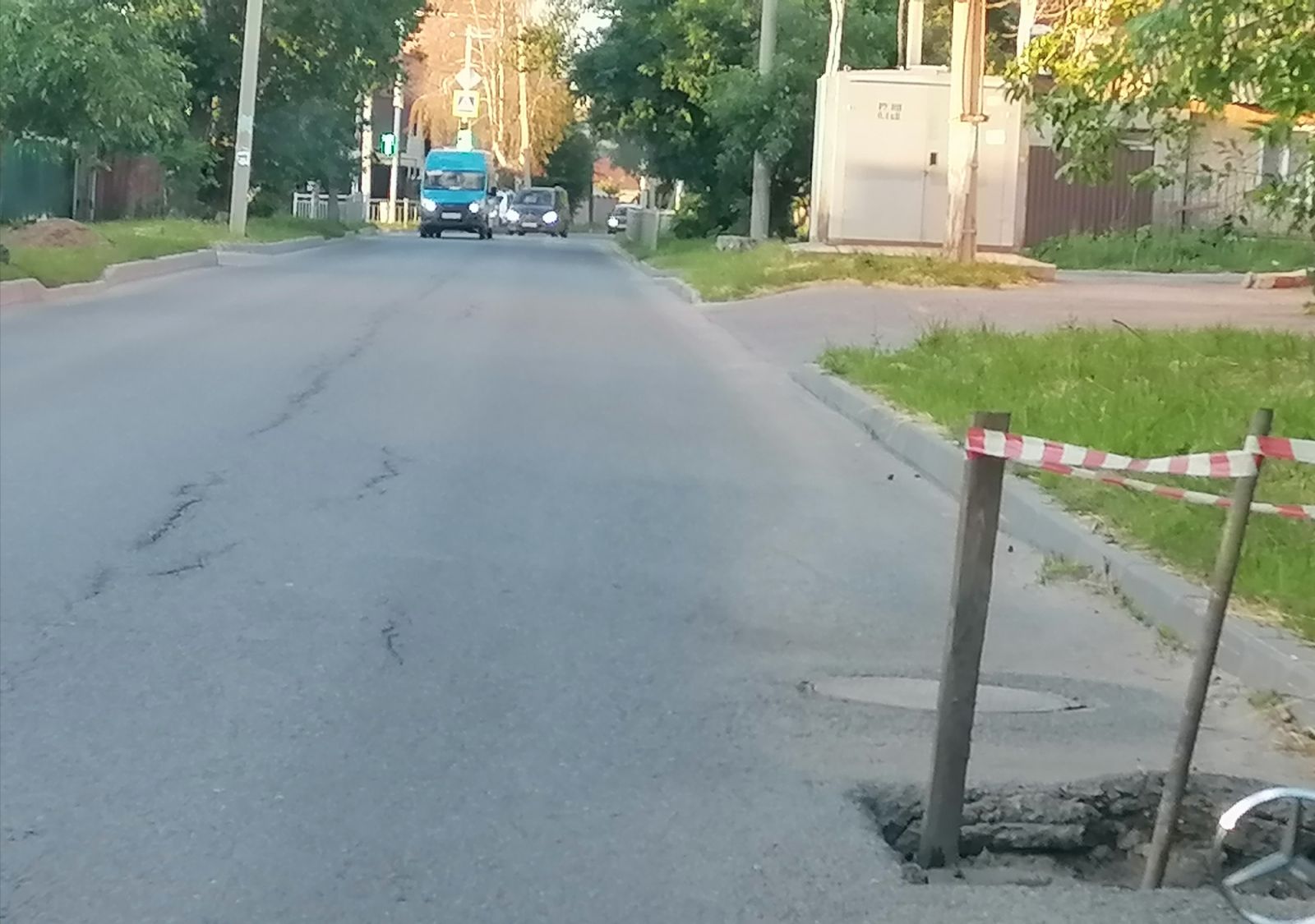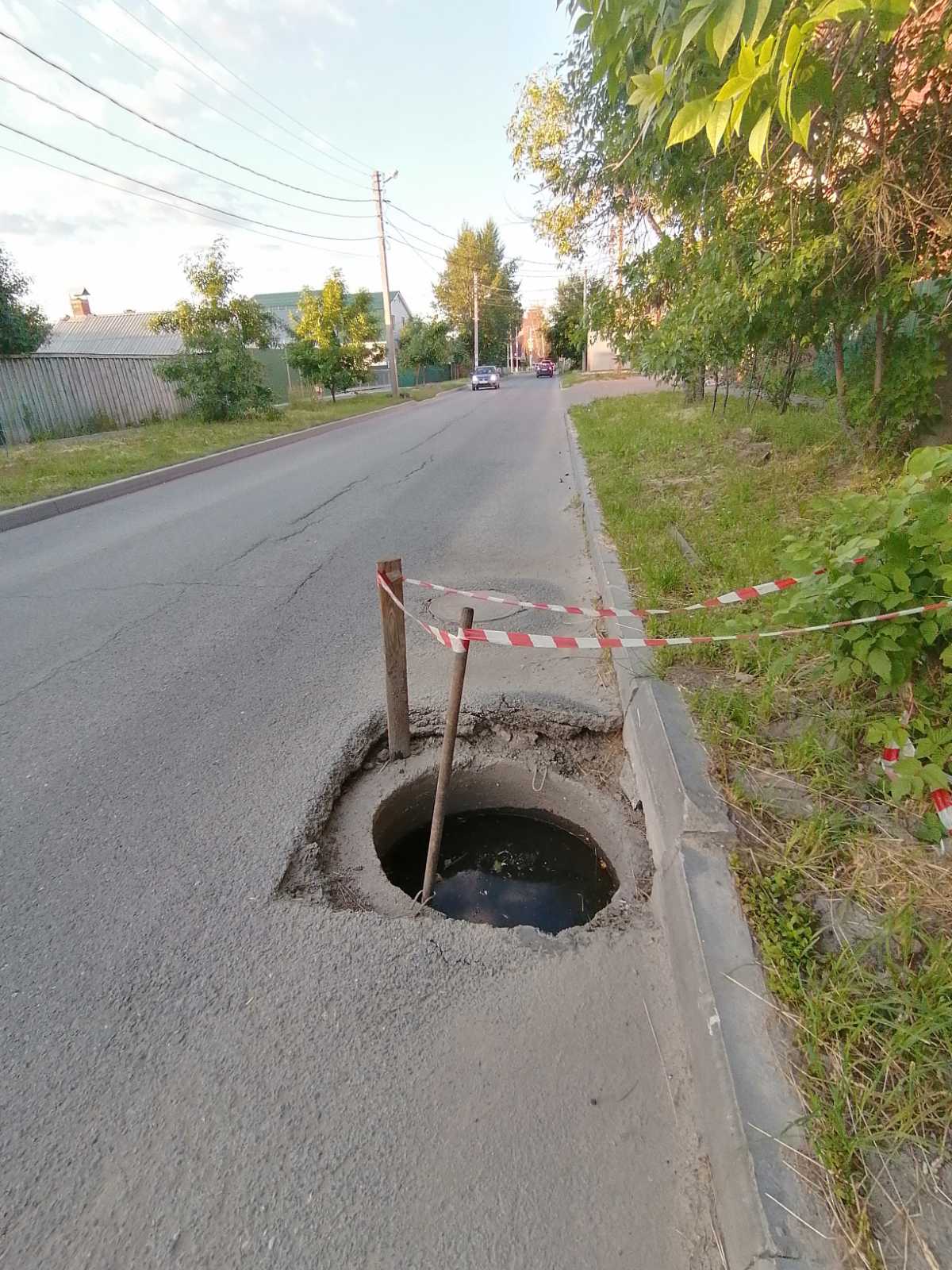 Открытый люк в районе дома 25/8 по улице Любови Шевцовой в Ульяновске с разрушенным вокруг асфальтом с весны угрожал жизни и здоровью пешеходов и автовладельцев