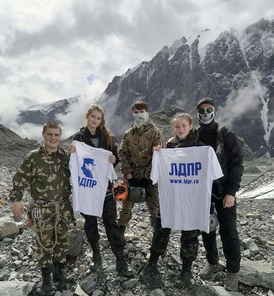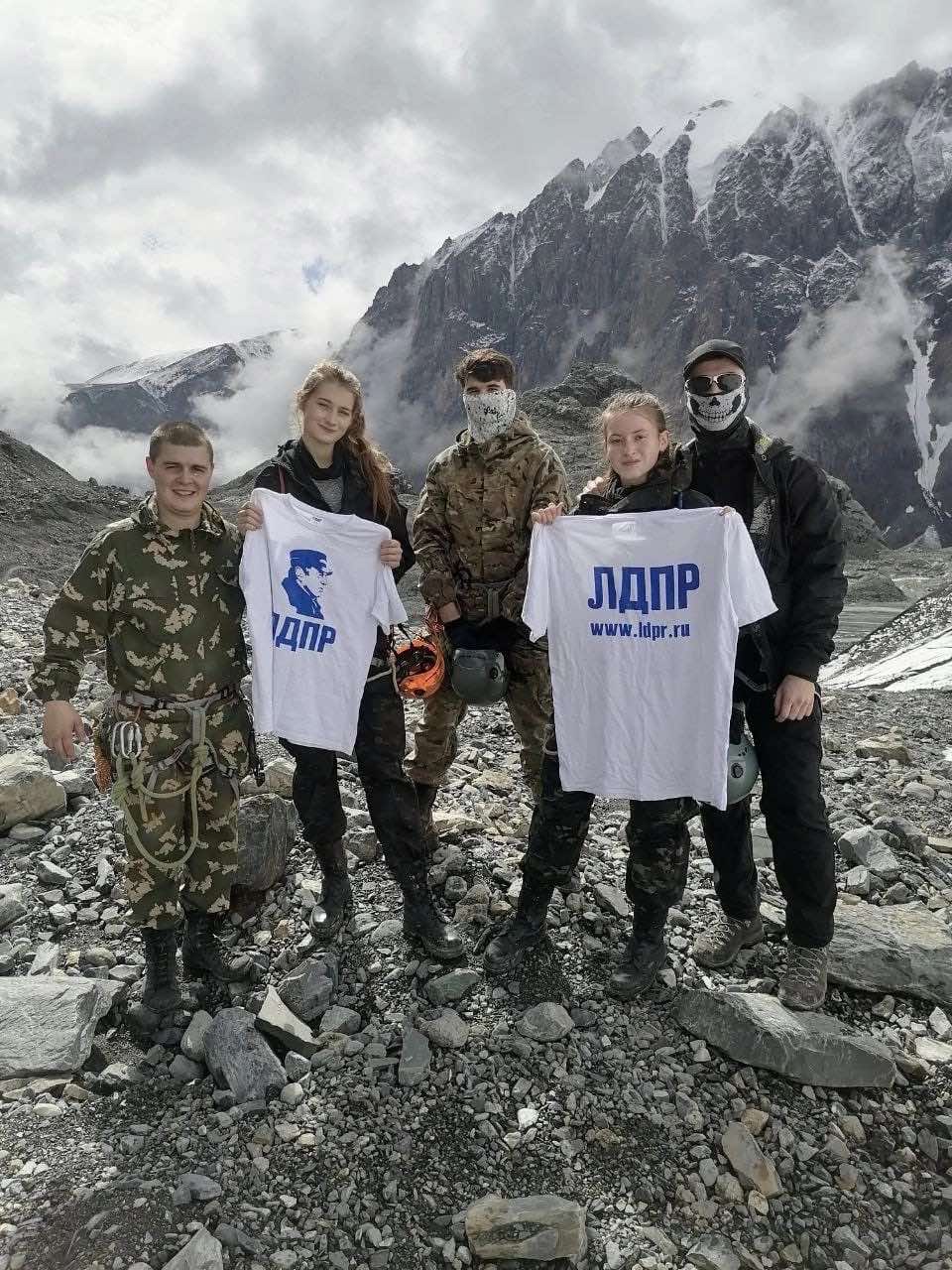 С согревающими тело и душу футболками ЛДПР молодежь из Сургута провела восхождение на ледник Актру высотой 3 500 м