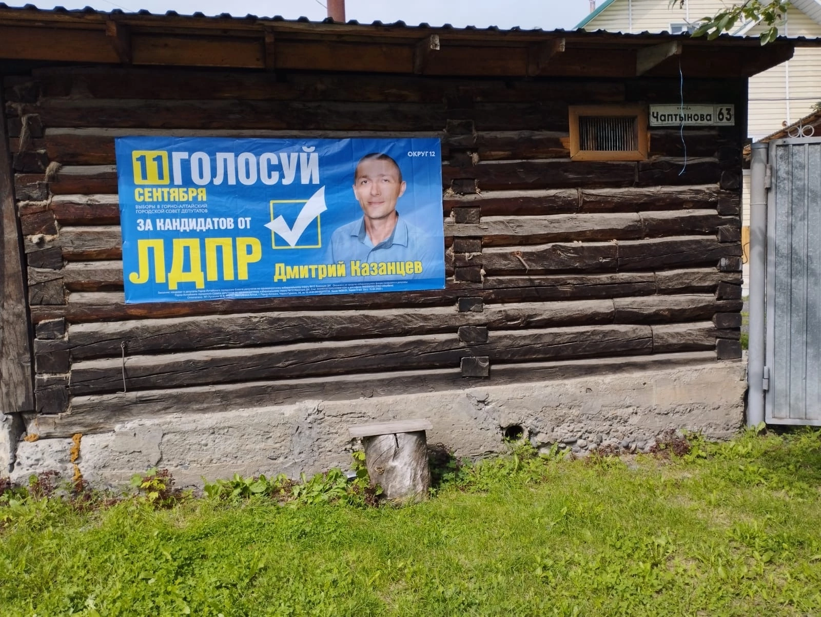 Активисты ЛДПР в Горно-Алтайске вышли на улицы одномандатного округа N12 для распространения агитационных материалов кандидата от ЛДПР Дмитрия Казанцева - размещены агитационные баннеры, плакаты, листовки с информацией о выборах и кандидате