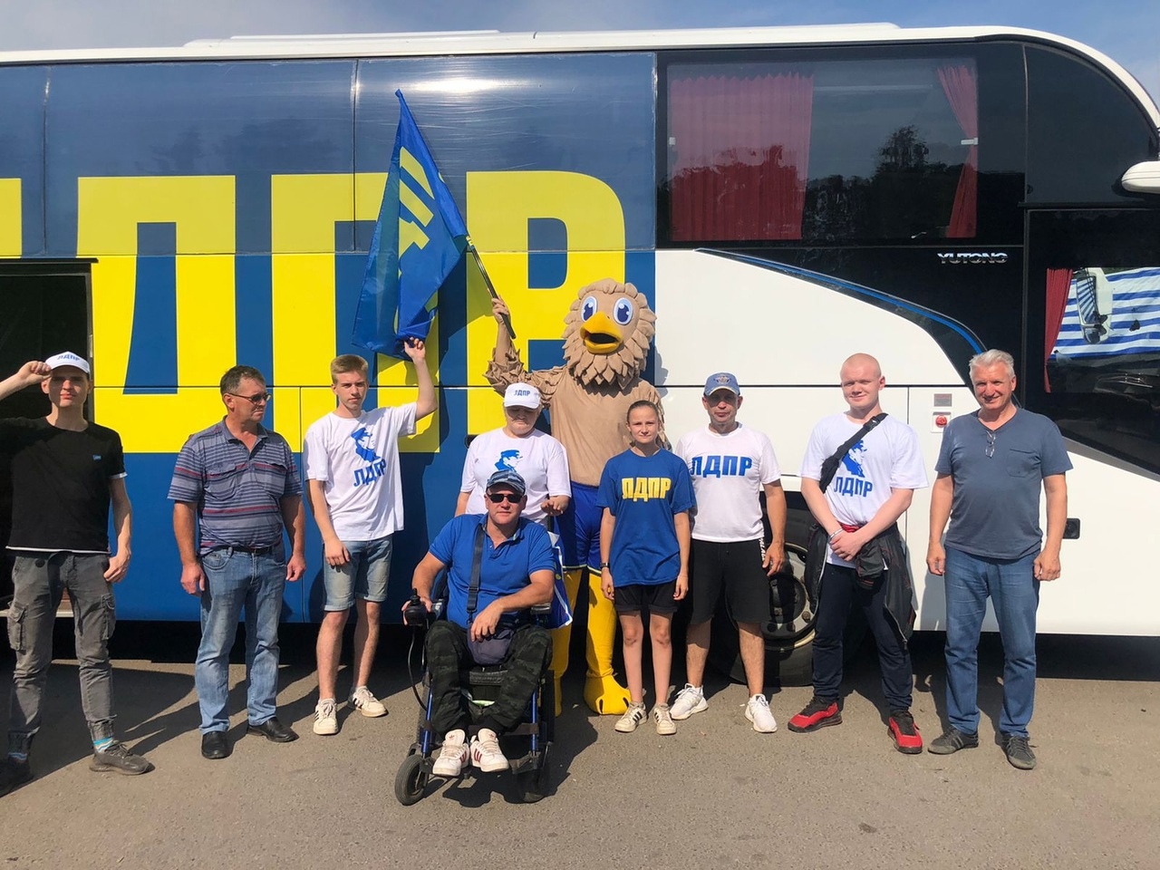 К команде автобуса помощи присоединился символ партии - Сокол ЛДПР! Экипаж посетил Максатиху и три участка в Твери