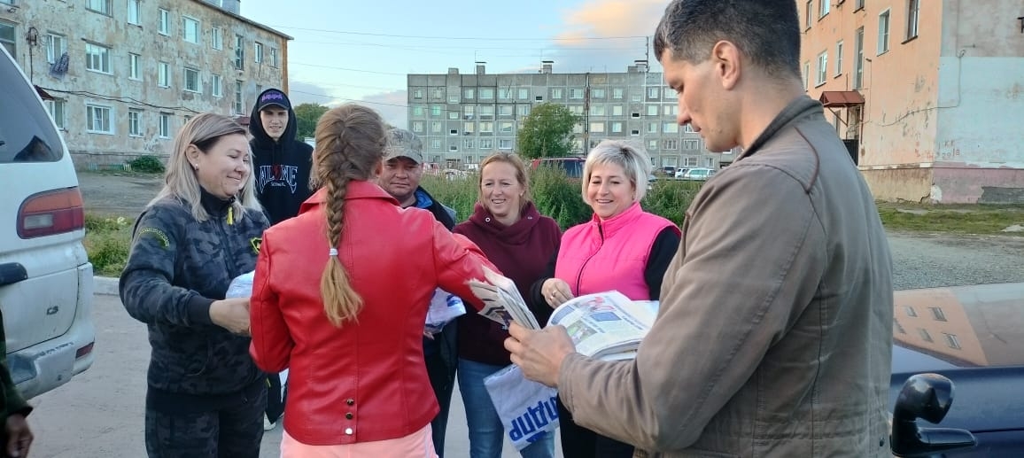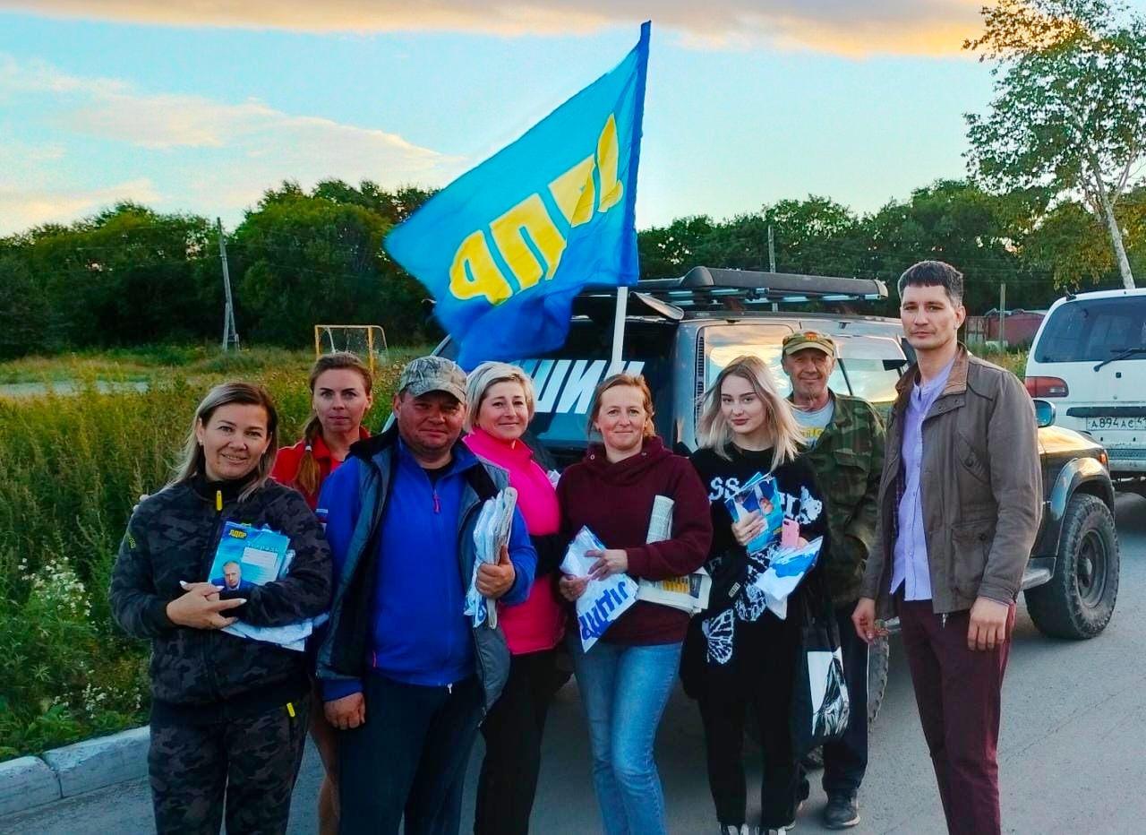 Старший мастер рыболовецкого колхоза им. Ленина Александр Яшин с соратниками по партии провели на улицах города и за его пределами акцию по раздаче свежего выпуска газеты «ЛДПР на Камчатке»