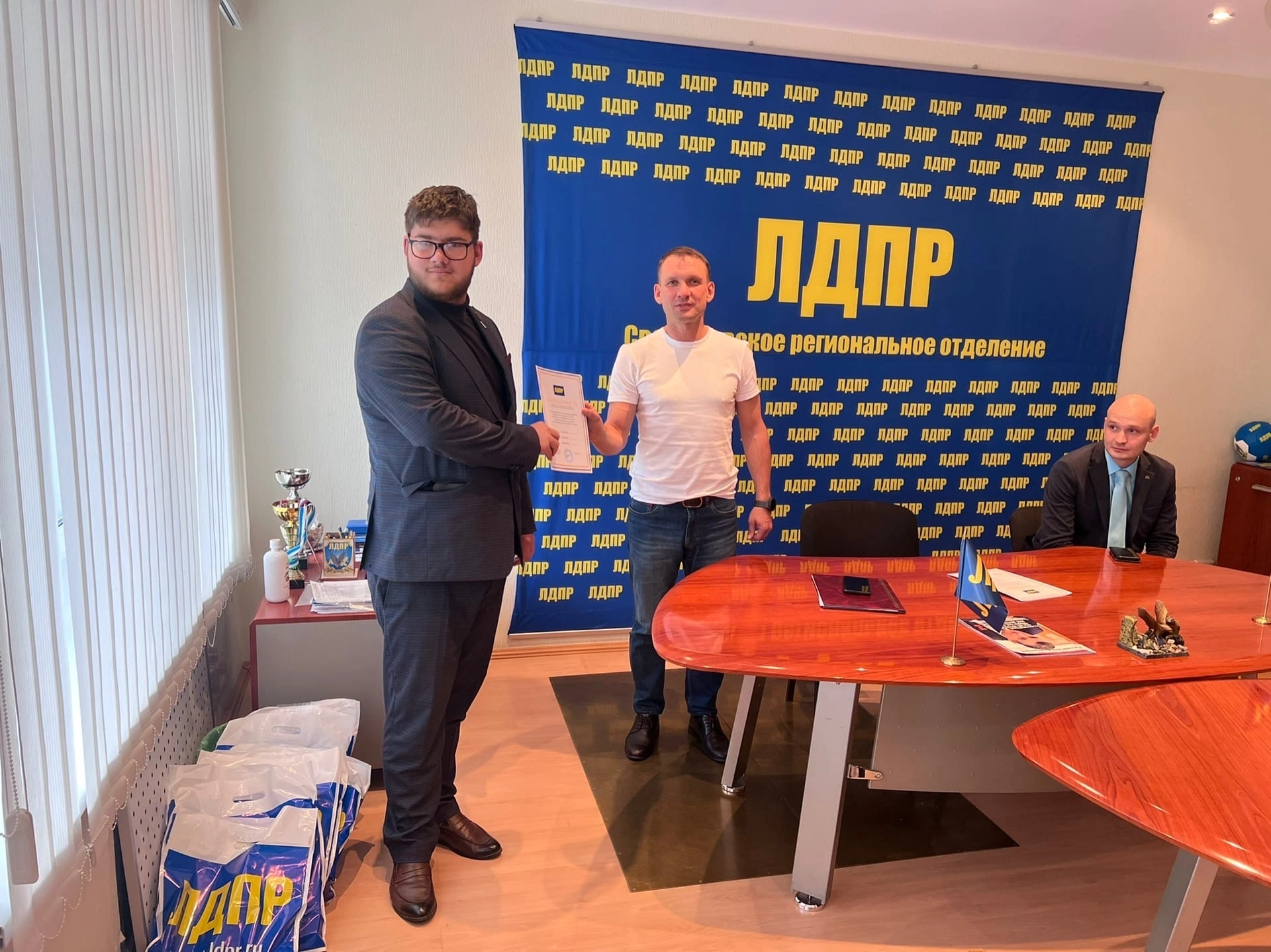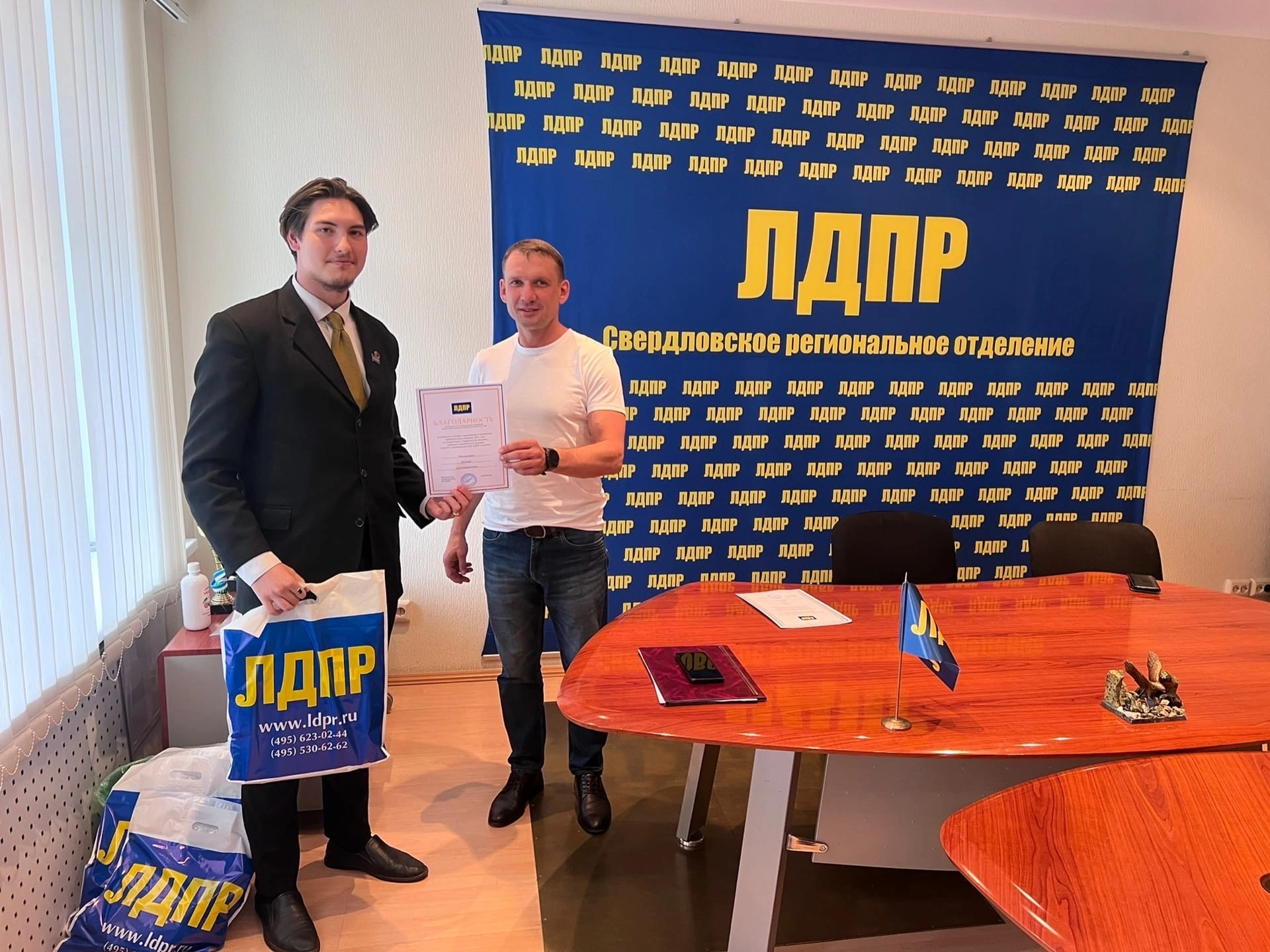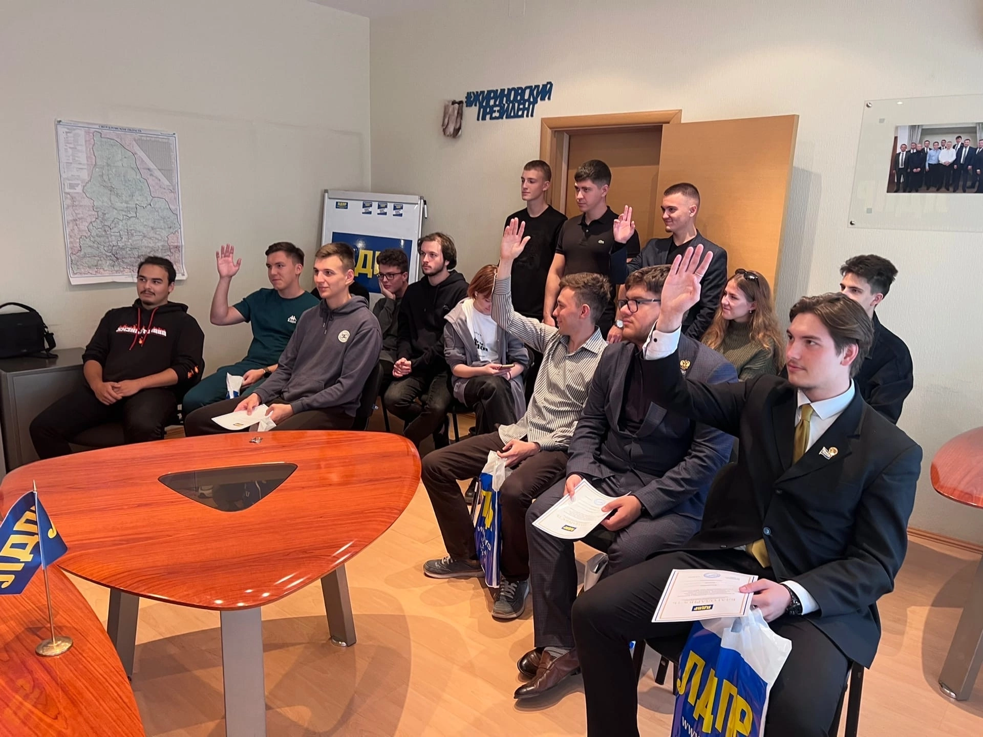 Координатор Свердловского регионального отделения ЛДПР Александр Каптюг встретился с Молодёжной организации ЛДПР, поблагодарил активистов за помощь и поддержку на губернаторских выборах, вручил благодарности
