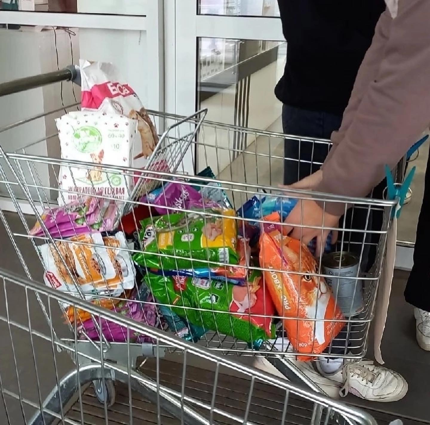 За два часа тележки наполнились необходимыми для содержания животных вещами и продуктами: сухими кормами и консервами, субпродуктами, крупами, средствами гигиены и лекарствами.