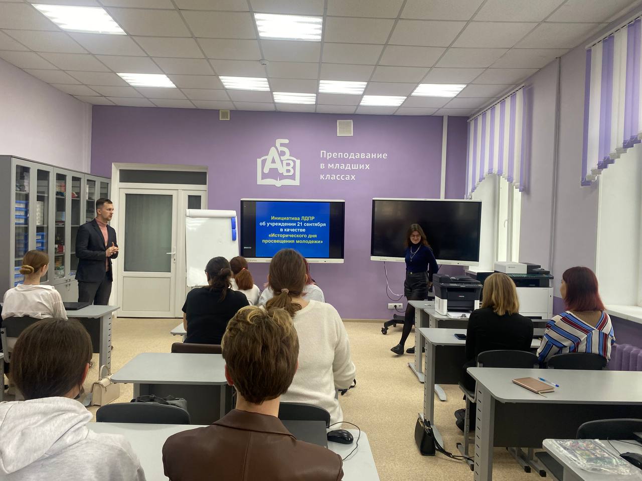 Заместитель координатора Смоленского реготделения Владислав Ульянов вместе с руководителем молодежного крыла партии в регионе Варварой Господарчук обсудили со студенческим активом Смоленского педагогического колледжа инициативу ЛДПР о признании 21 сентября Днем просвещения молодежи. Также представители партии рассказали ребятам о проектах ЛДПР #ШколаПрава, #ПолитЛикБез