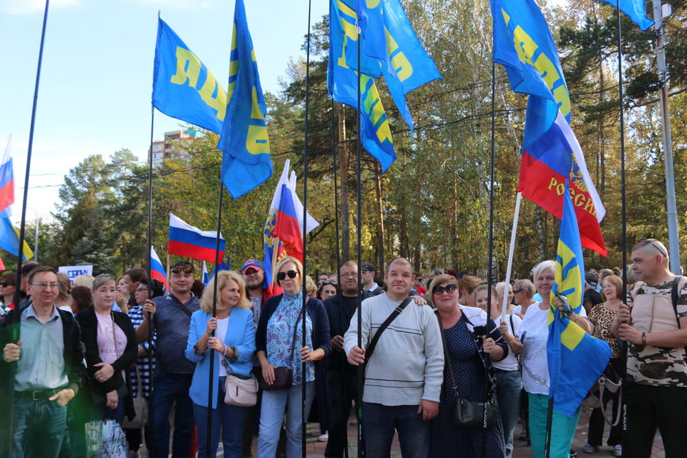 Над площадкой заметно возвышались флаги ЛДПР. Позиция у партии одна и всем известная, сформированная ещё много лет назад Владимиром Жириновским: Донбасс на пути домой. Референдумы, которые проходят с 23 по 27 сентября, о вхождении в состав России являются своевременными, подчеркнул Председатель ЛДПР Леонид Слуцкий. И мы поддержим свободное волеизъявление людей, которые хотят оставаться частицей русского мира.