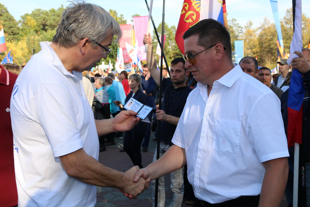 Пришли на митинг и партийные «новички». Это молодые люди, которые узнали об Общероссийском приёме в партию имени Владимира Жириновского и направили анкеты. Сегодня на мероприятии руководитель аппарата Челябинского регионального отделения ЛДПР Анатолий Ганин торжественно вручил им значки и партийные билеты нового образца.