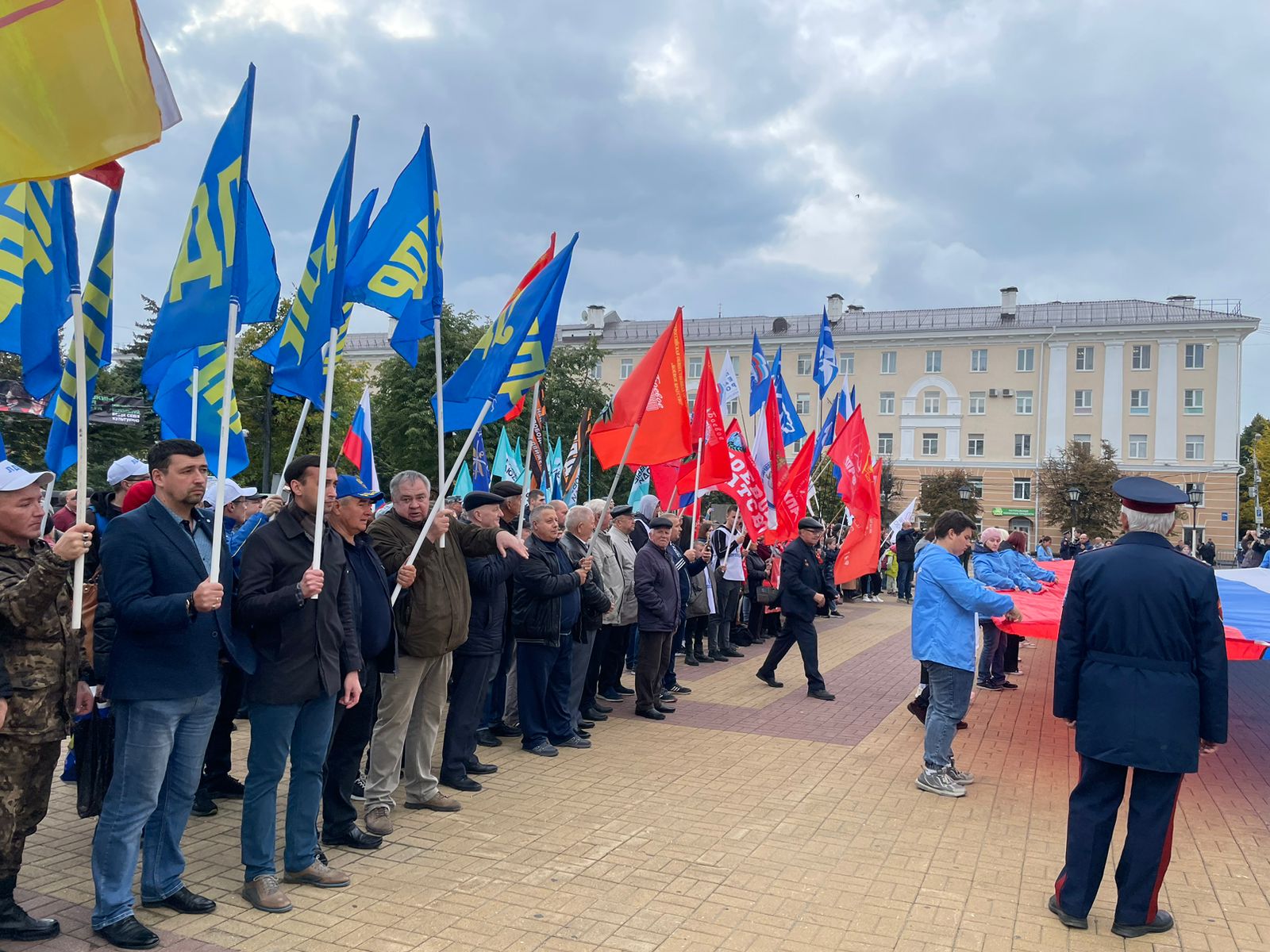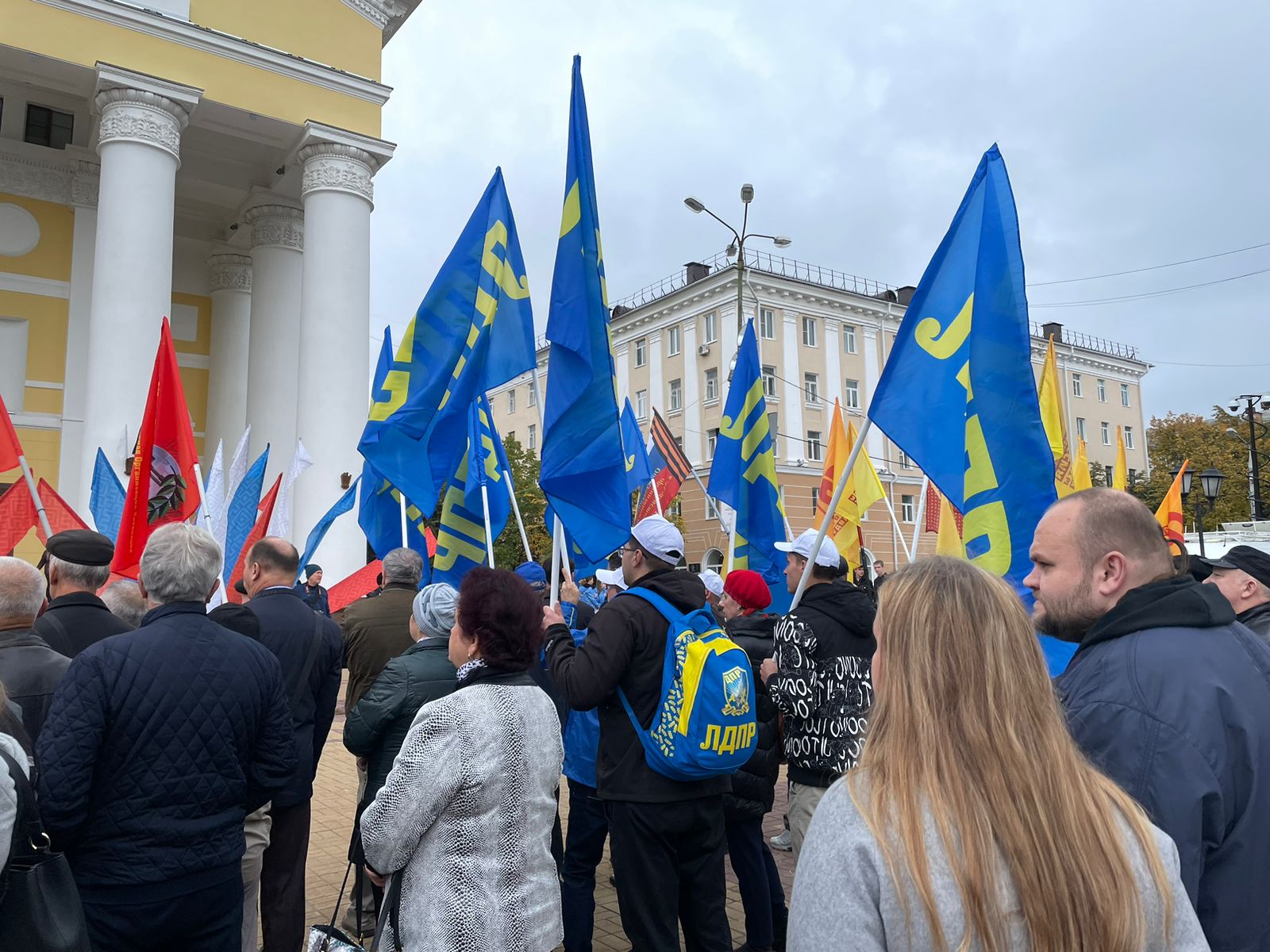 В Калуге прошёл городской митинг в поддержку жителей ЛНР, ДНР, Запорожской и Херсонской областей. Исполняющий обязанности координатора Калужского регионального отделения ЛДПР Игорь Головнев, депутаты Законодательного Собрания Калужской области от ЛДПР Дмитрий Лозенко и Сергей Ушкал, вместе с партийцами приняли участие в митинге