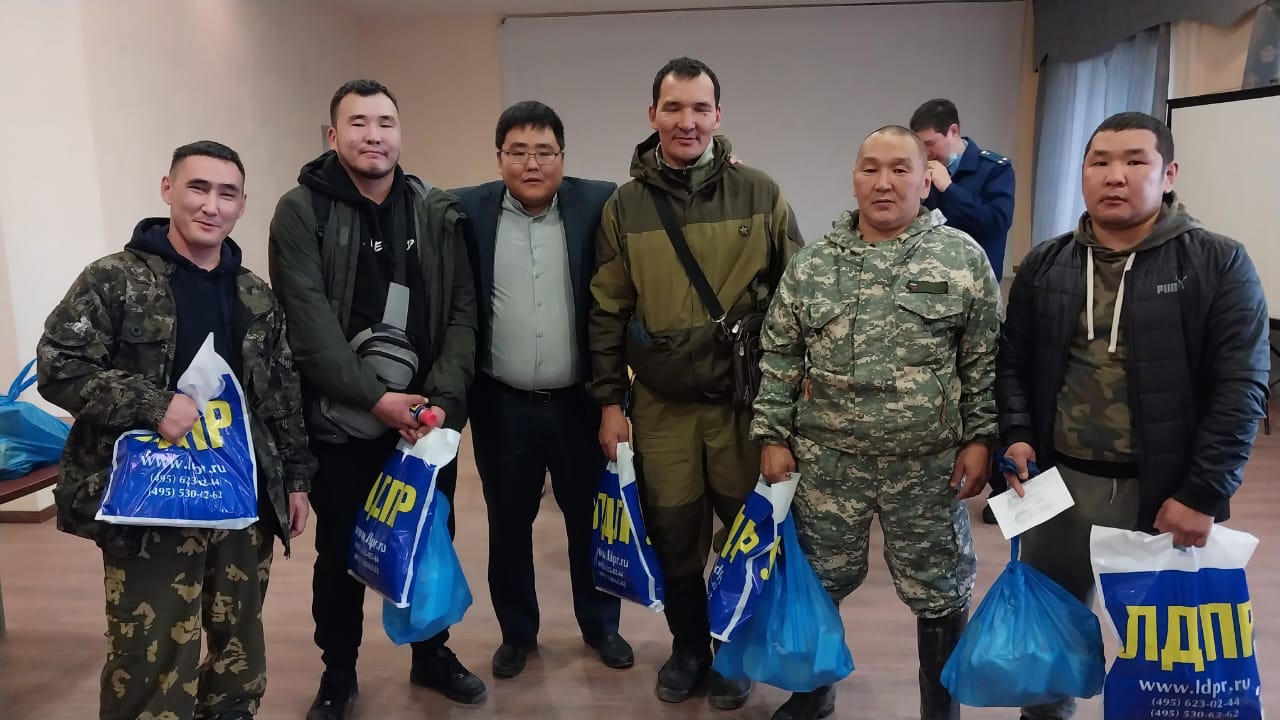 Депутат Жиганского районного совета от ЛДПР Дмитрий Балыкин вручил призывникам продуктовые наборы в дорогу.