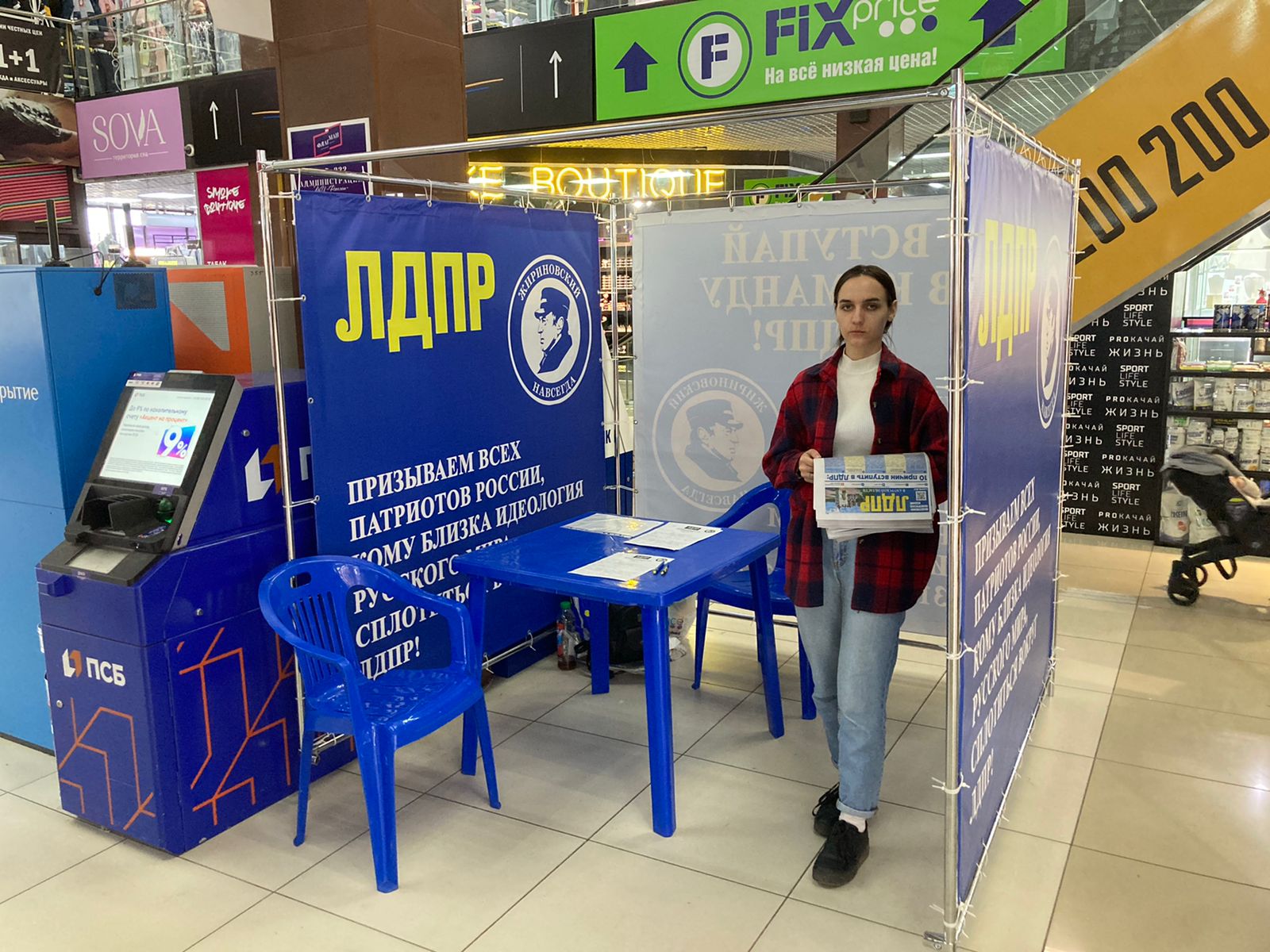 В одном из популярных мест города – в ТЦ Флагман, на первом этаже партийцы выдают и помогают заполнить анкеты на вступление в партию.