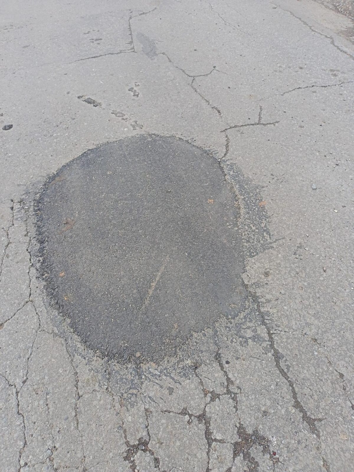 Огромная яма на проезжей части в районе дома №3 на улице Центральная в липецком селе Подгорное затрудняла движение автомобилей и создавала потенциальную аварийную ситуацию