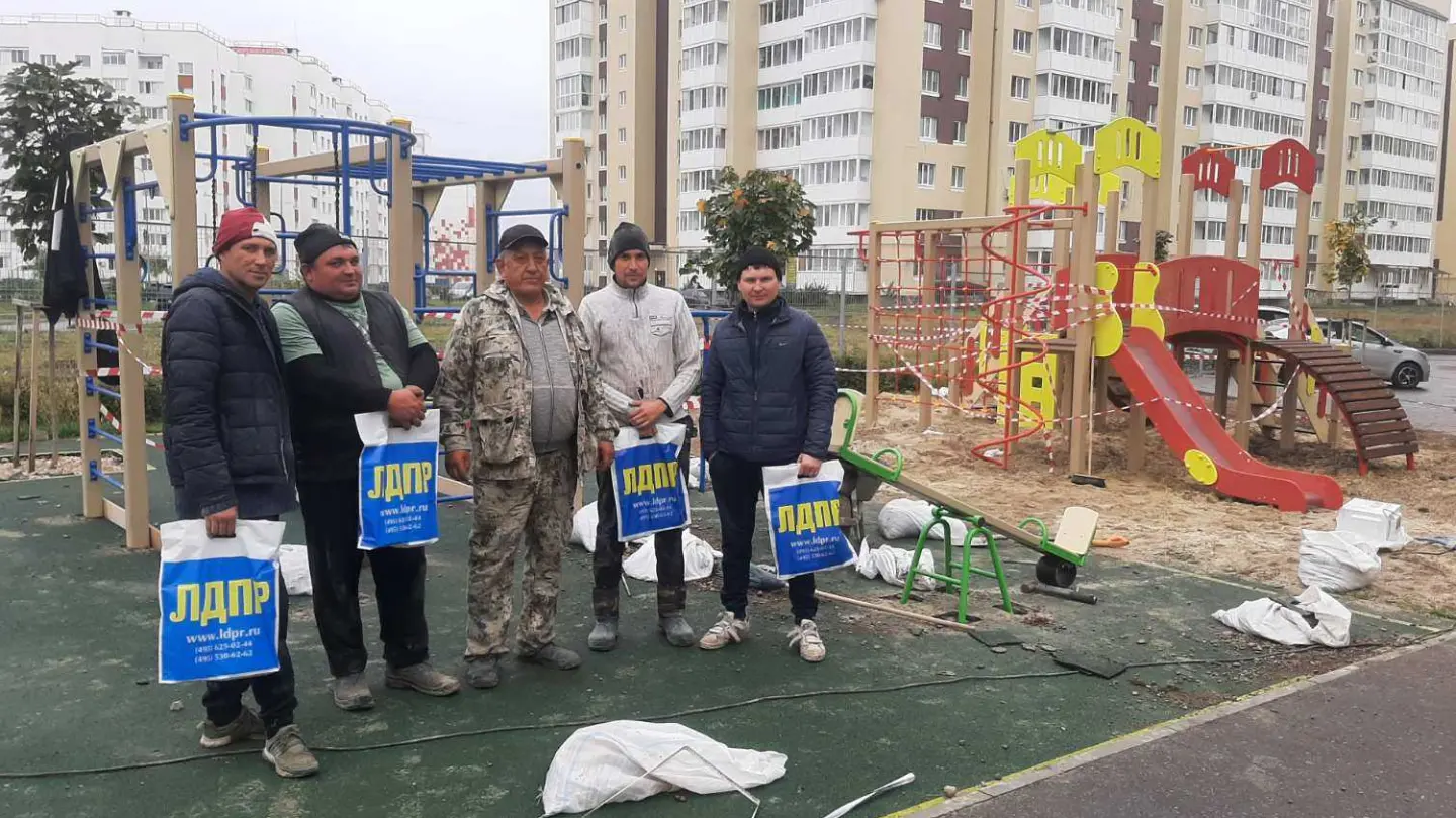 «На Юго-Западной, 9 и в соседних домах проживает много молодых семей с детьми. Памятуя об этом, депутаты от ЛДПР установили во дворе внушительных размеров детскую площадку, состоящую из качелей-качалок, двойных качелей, песочного дворика, игрового и гимнастического комплекса. Теперь детскую зону во дворе не узнать.