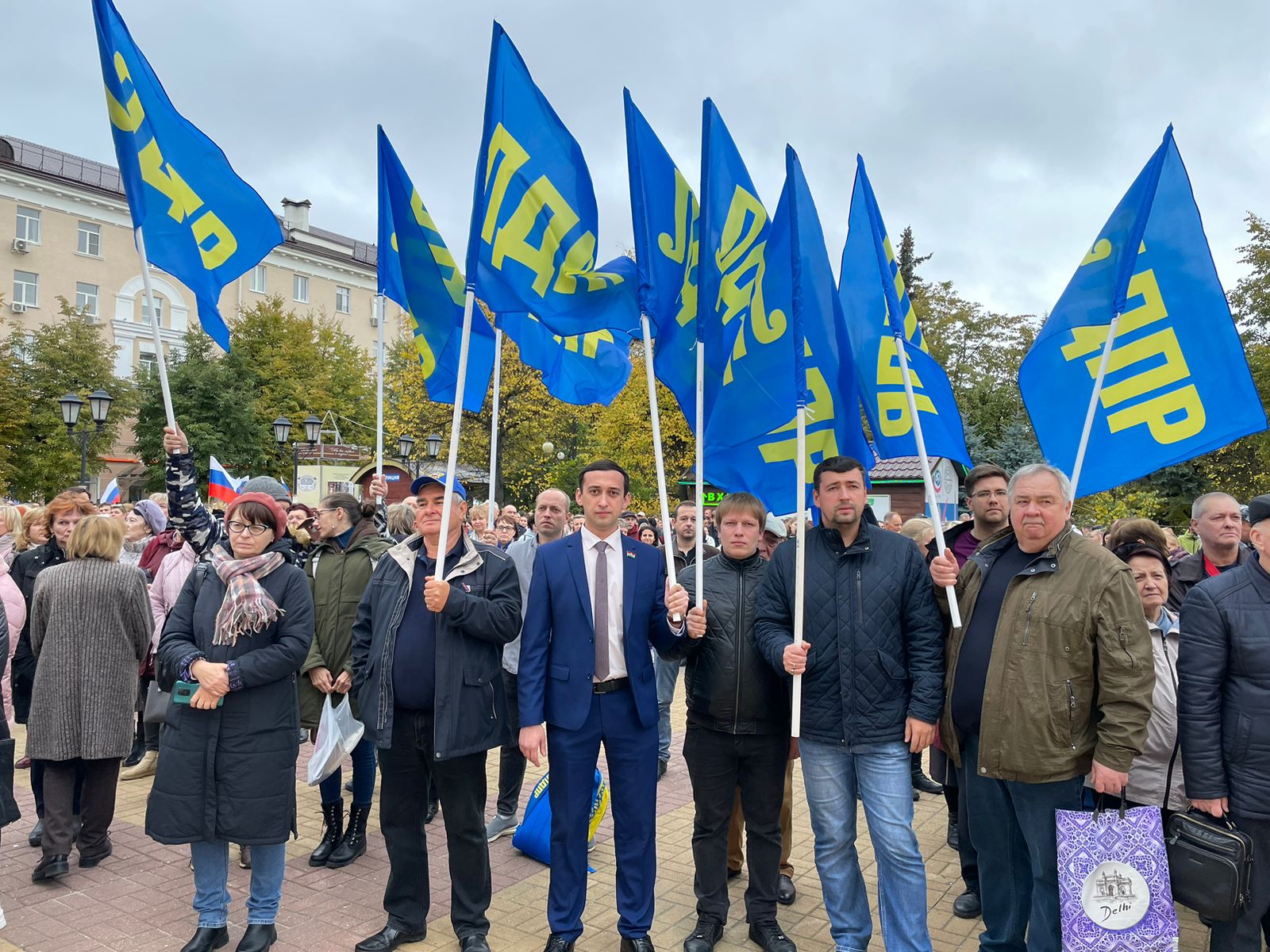 Представители Калужского регионального отделения ЛДПР: депутаты, помощники, координаторы, члены Молодёжной организации, активисты - приняли участие в митинге, посвящённом возвращению Донецкой и Луганской народных республик, Запорожской и Херсонской областей в состав России