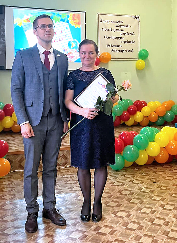 Заместитель председателя комитета по социальной политике Тульской областной Думы, член фракции ЛДПР Илья Киндеев вручил Благодарности учителям Шварцевского центра образования в Киреевском районе