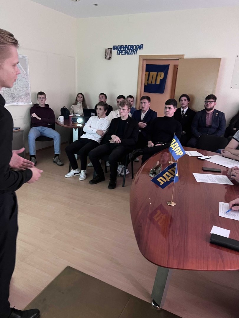 Пять активистов ЛДПР решили претендовать на должность руководителя Молодежной организации Свердловского регионального отделения ЛДПР. Каждому участнику отводилось 15 минут времени на презентацию себя и своего проекта на тему: «Я и мое видение Молодежной организации ЛДПР» .