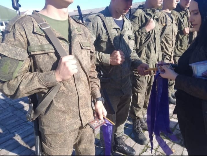 Лично каждому военному были вручены иконки с молитвами, защитные церковные пояса и свечки.