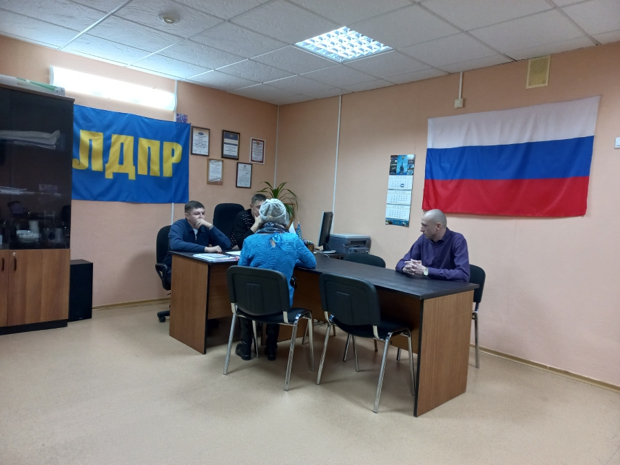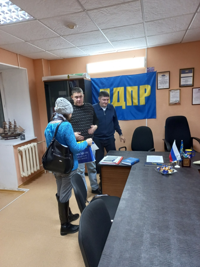 Принято письменное обращение на имя партийцев, заявительнице депутат вручил памятные подарки с символикой ЛДПР.