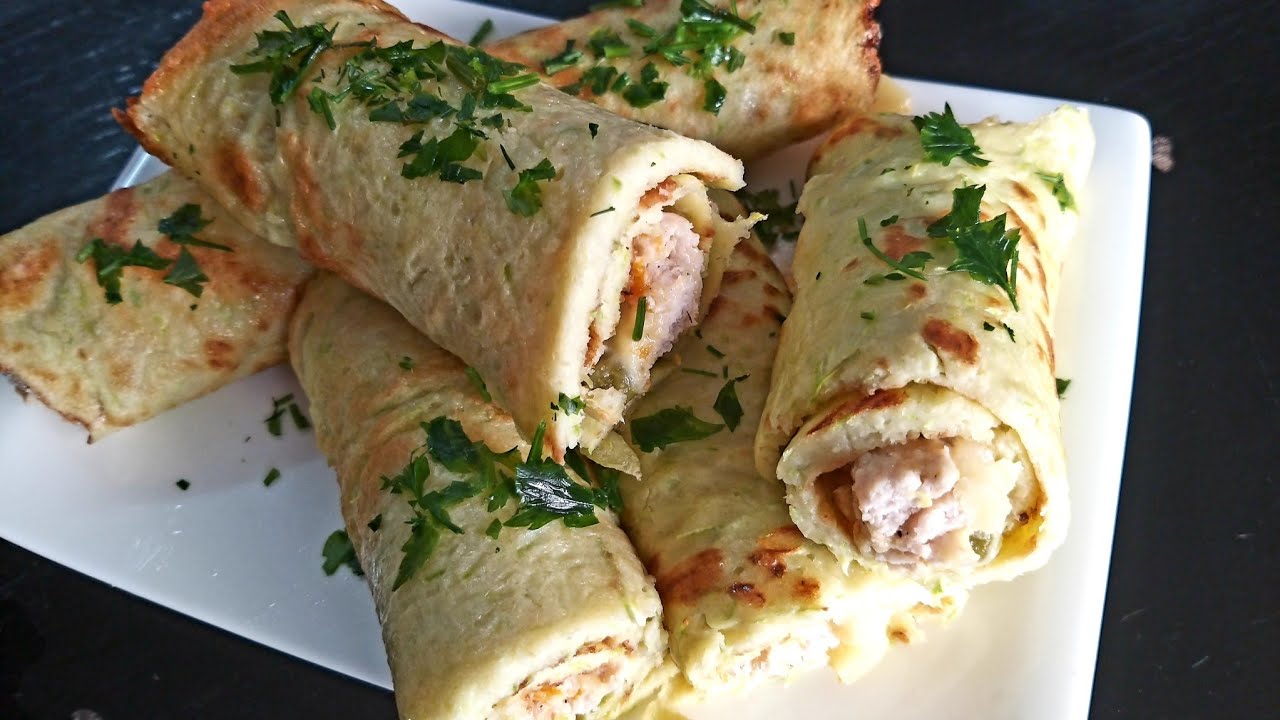 Рецепт приготовления. На большой сковороде пассируем натёртые на мелкой тёрке морковь и картошку. Туда же добавляем мелко нарезанные луковицы. Плюс специи. Затем пассируем морковку с луком, на сковороду рядом выкладываем предварительно размороженный рыбный фарш. Все составляющие начинки часть времени держим под крышкой, часть на открытой сковороде. Далее готовим однородную смесь для блинов, и выпекаем их на сковороде. Когда блины будут готовы, заворачиваем в них рыбную начинку и сворачиваем в трубочку. Блины выкладываем в плотный ряд на тарелку. Приятного аппетита!