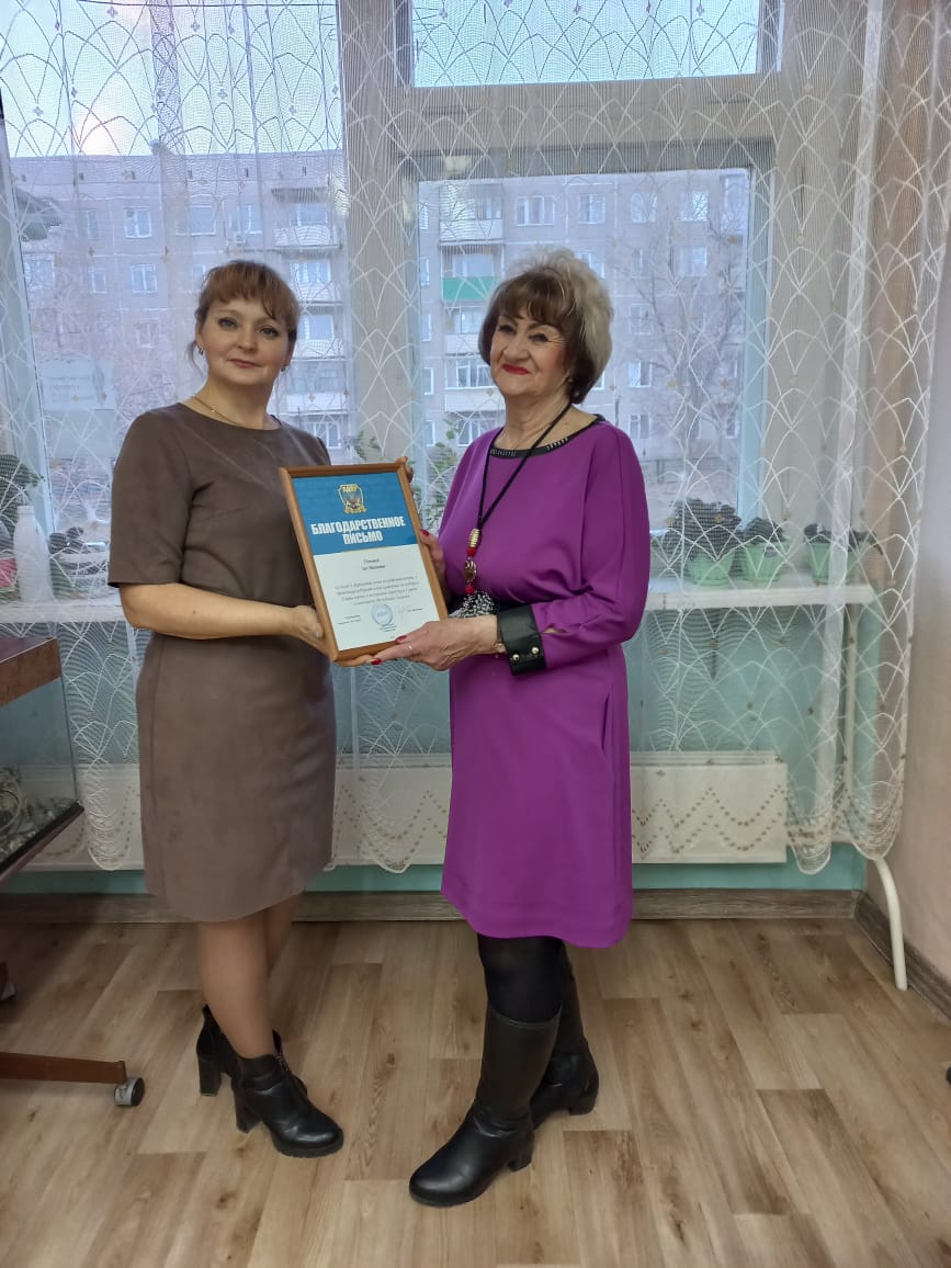 Татьяна Воробьева поздравила коллектив с Днем народного единства и вручила благодарственное письмо от Хакасского регионального отделения ЛДПР Зое Поповой - члену ЛДПР, солистке хора и поблагодарила за многолетний труд.