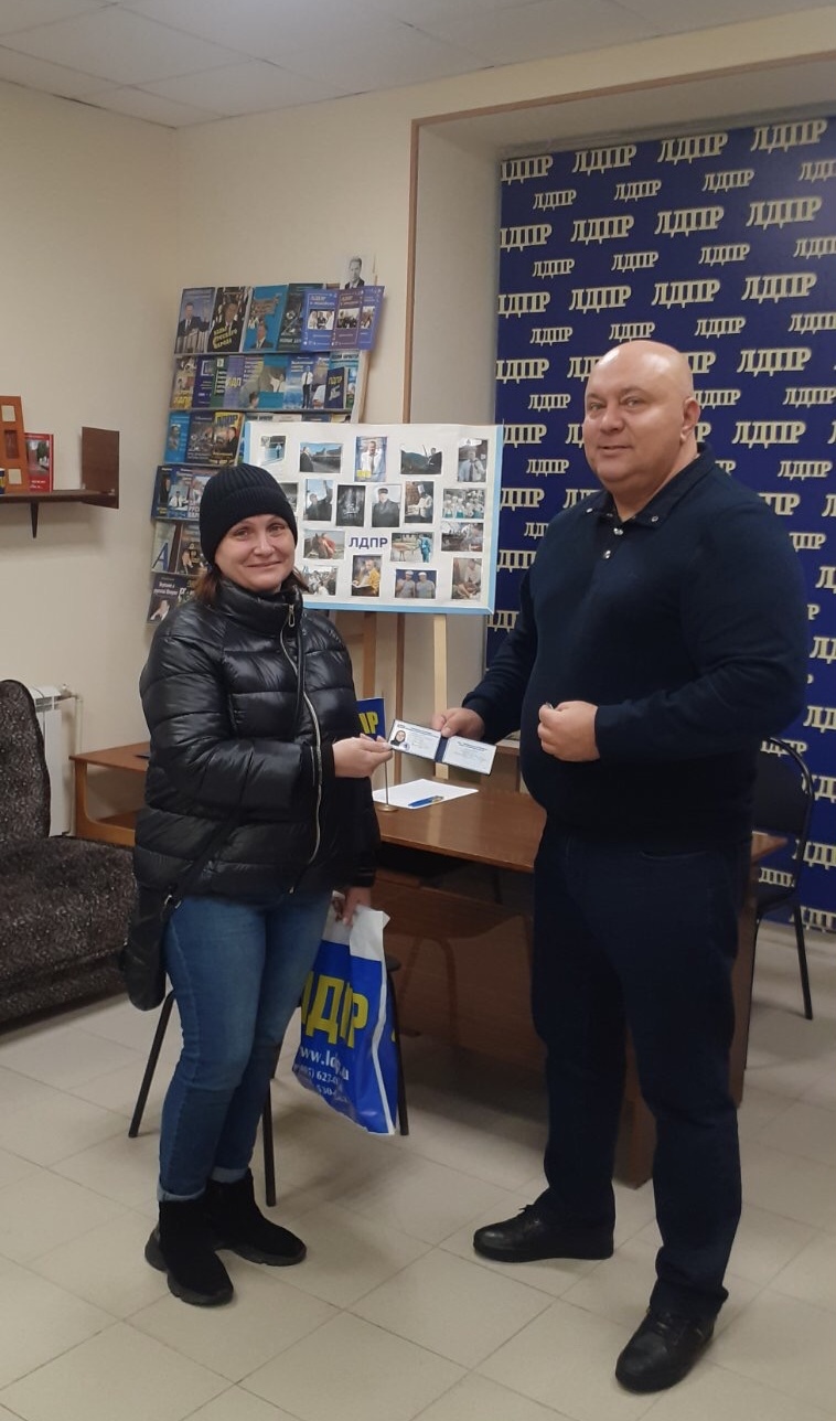 В ходе приёма вручил партийные билеты новым членам ЛДПР.