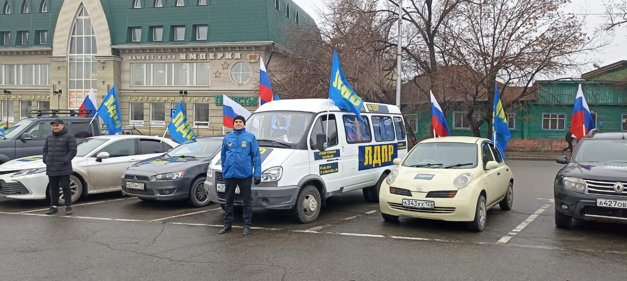 Активисты ЛДПР в Барнауле выстроились в автоколонну, украшенную флагами, и проехали по заявленному маршруту. Участники акции ездили по улицам города, поздравляя жителей региона. В мероприятии участвовало порядка 20 машин. Проезжающие водители на несколько секунд притормаживали и пропускали идущую колонну, а также выстраивались в ряд вместе с ней, тем самым обозначая единение нашей страны и народа!
