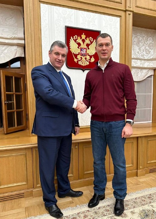 Председатель ЛДПР Леонид Слуцкий обсудил с губернатором Хабаровского края Михаилом Дегтярёвым планы и мероприятия на 2023 год по поддержке жителей Дальнего Востока по партийной линии