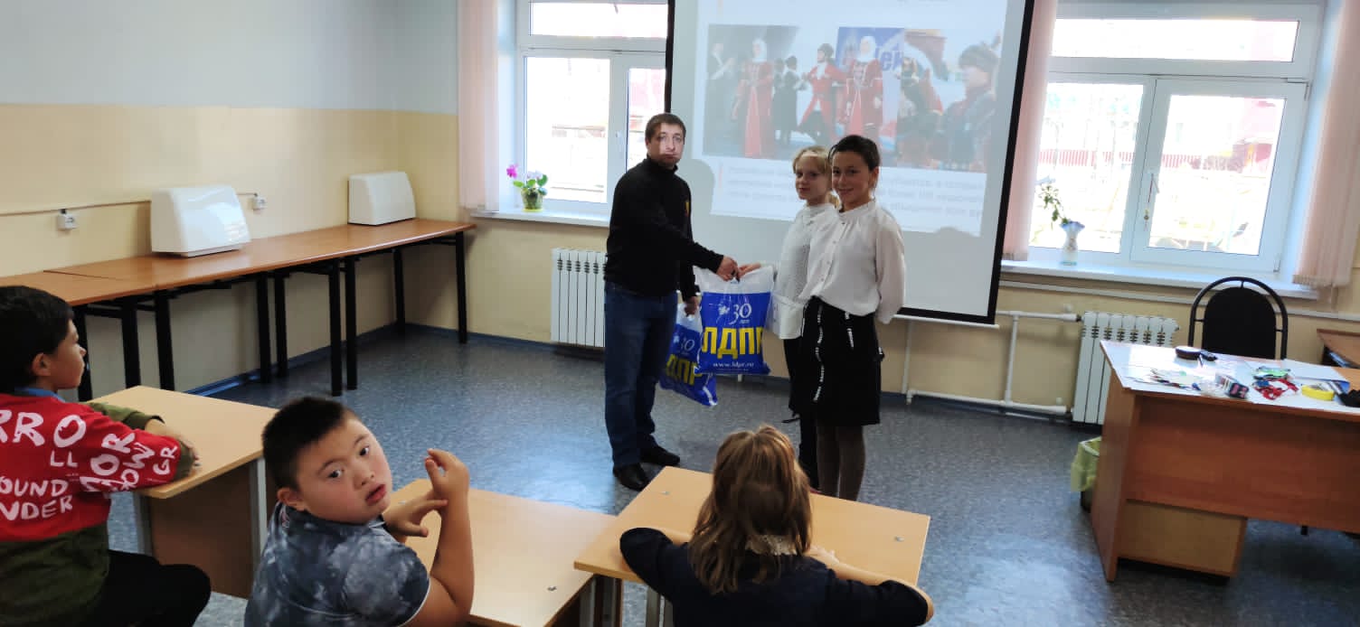 Исполняющий обязанности координатора Поронайского местного отделения ЛДПР Николай Меньшиков провел беседу с детьми на тему "Мы разные, мы вместе" в МБОУ СОШ №4.