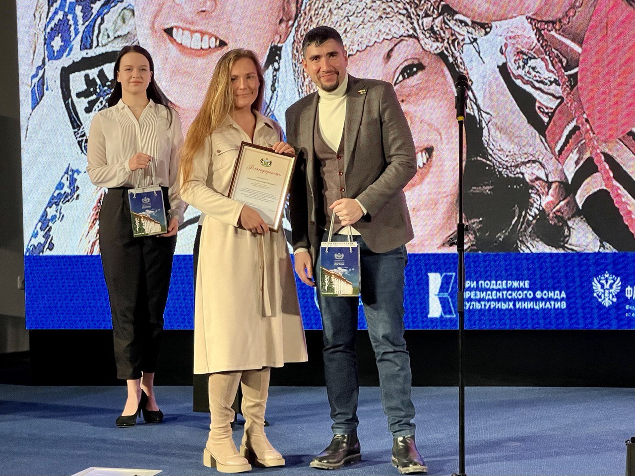 Заместитель руководителя фракции ЛДПР Тюменской областной Думы Иван Вершинин наградил лауреатов первой степени второго Всероссийского конкурса национальных видеороликов, который проходил в рамках масштабного этнофорума «МЫ»