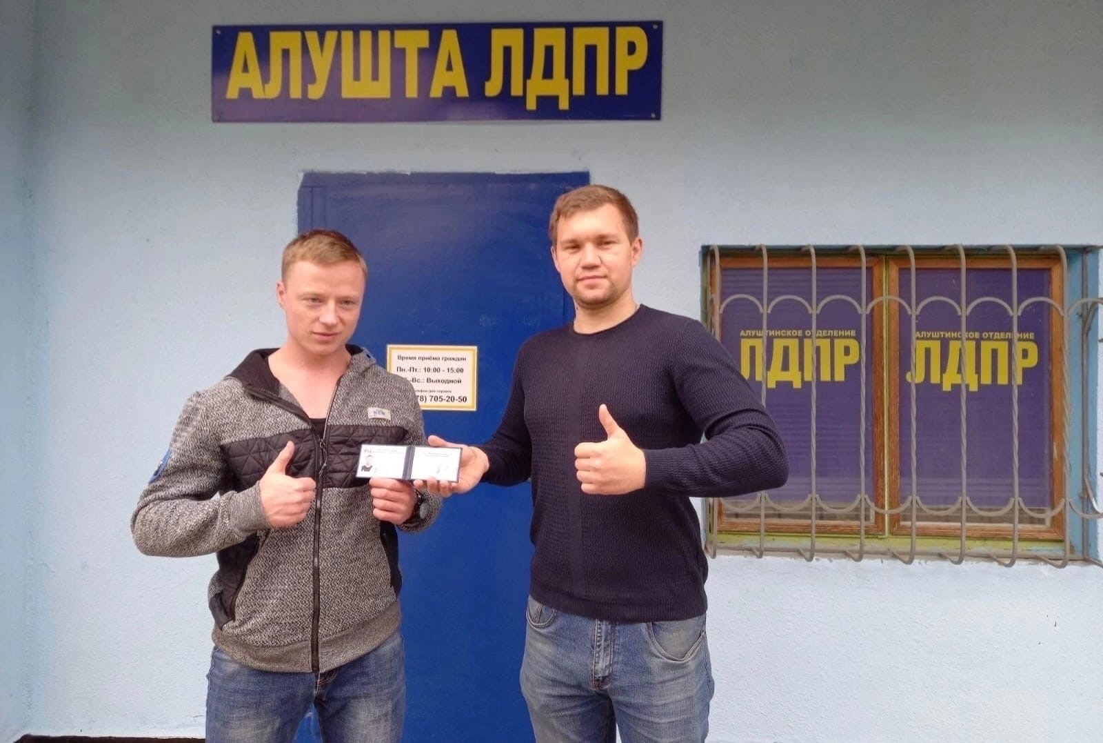 Координатор Алуштинского отделения ЛДПР Евгений Черевко вручил еще один партийный билет в рамках приёма в память о Владимире Жириновском.