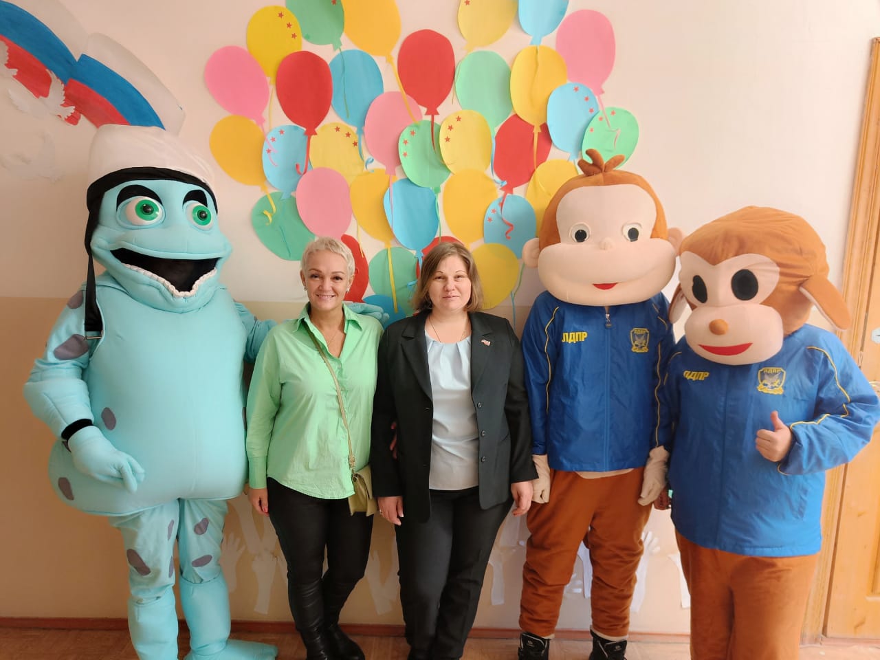 В костюмах ростовых кукол партийцы провели для гостей анимированную программу. Затем вручили детям сувениры от ЛДПР.