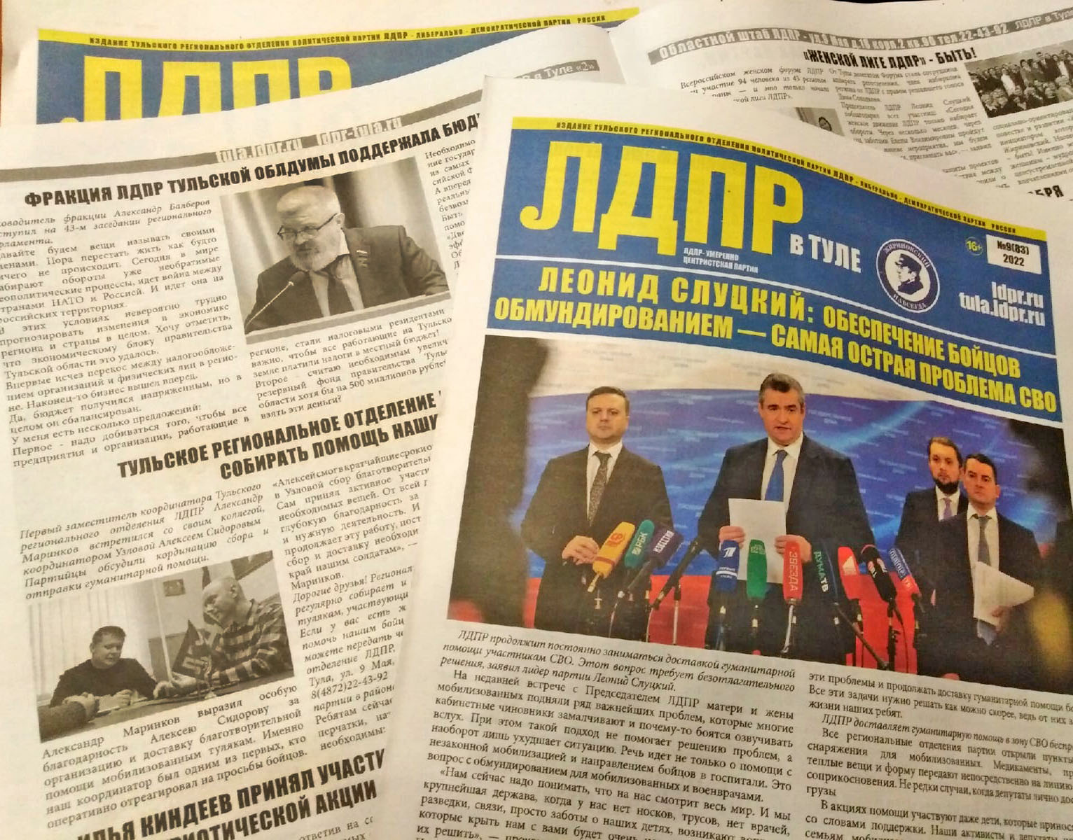 Читайте в нашей газете: Председатель партии Леонид Слуцкий о гуманитарной помощи СВО, Руководитель фракции ЛДПР Тульской областной думы Александр Балберов о бюджете региона на 2023 год, о «Женской лиге ЛДПР» и деятельности регионального отделения партии