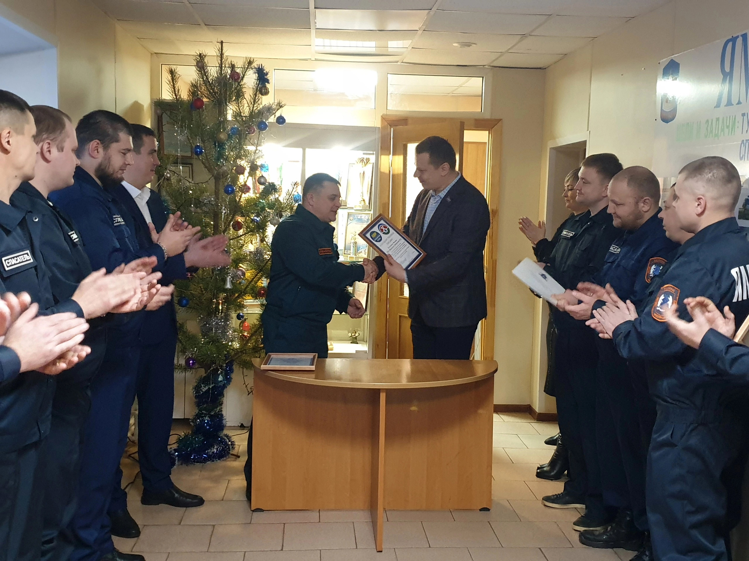 По поручению депутата Законодательного Собрания Ямало-Ненецкого автономного округа Александра Голубенко его помощники Валерия Ярулина Сергей Алексеев вручили Благодарности сотрудникам Надымского поисково-спасательного отряда ГКУ «Ямалспас» за добросовестное исполнение должностных обязанностей, высокий профессионализм и в связи с празднованием Дня спасателя Российской Федерации.
