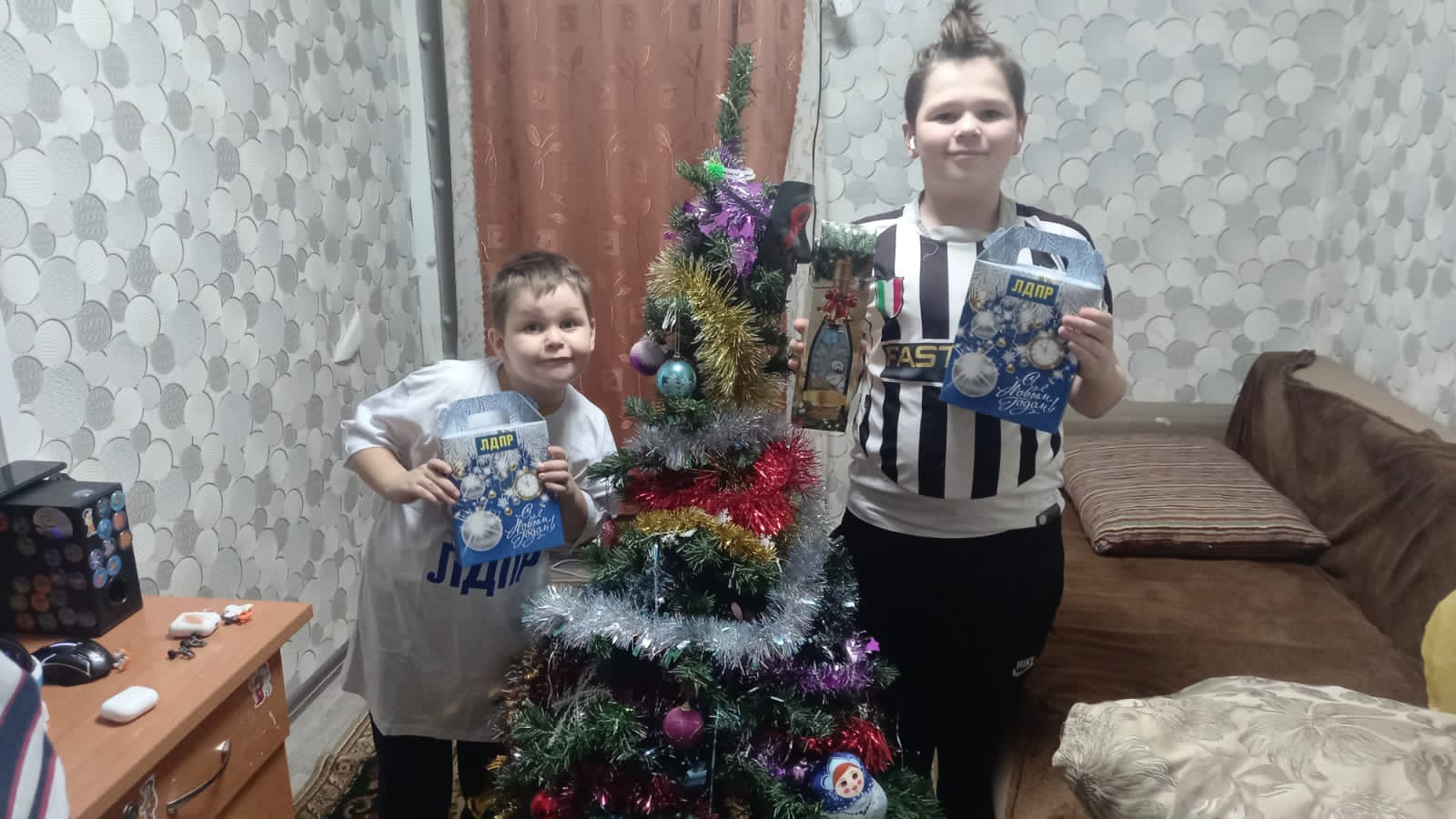 Партийцы вручили подарки детям и поздравили детей с наступающим Новым годом и пожелали всем крепкого здоровья и мирного неба над головой.
