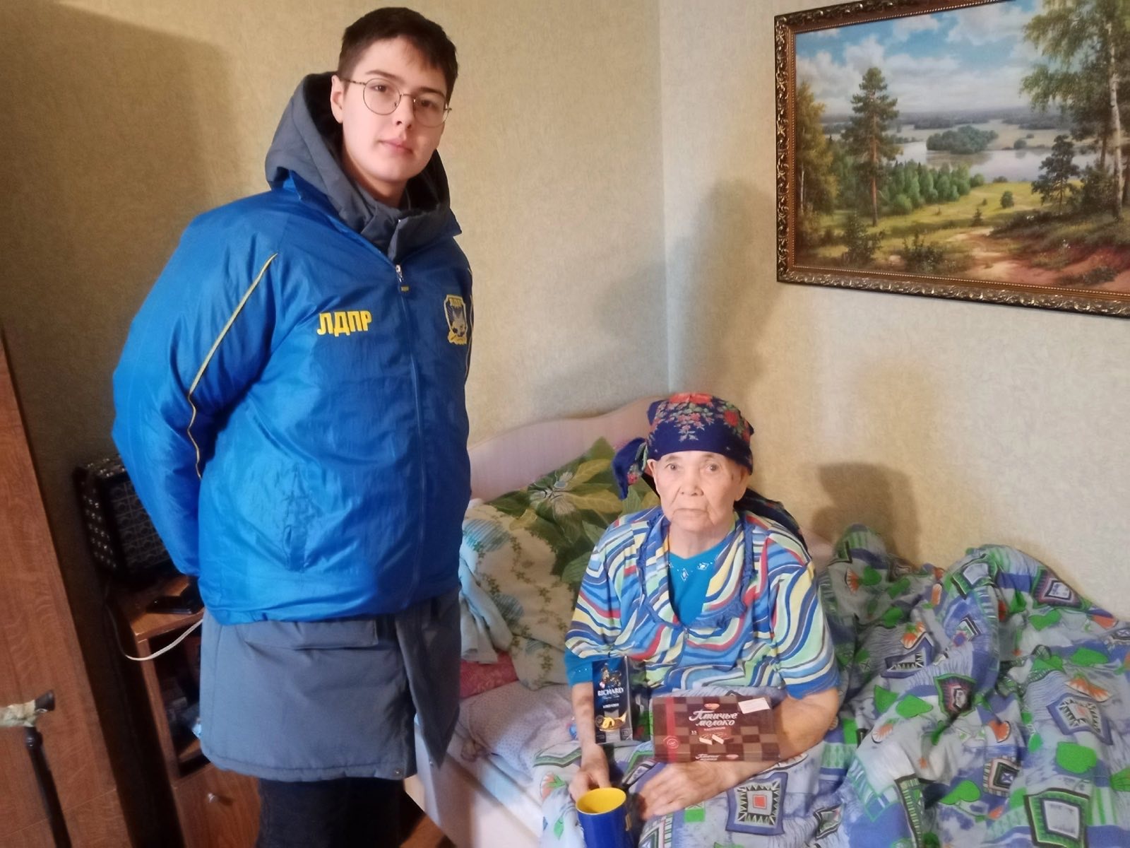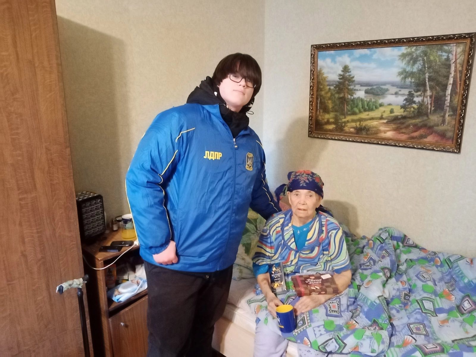 Сегодня активисты молодежки Вадим Кедяров и Кирилл Буздалов пришли на улицу Сурова в Новом городе к Октябрине Григорьевне Гордеевой. 92-летний ветеран была рада очередному визиту молодых гостей. Партийцы подарили хозяйке кружку для чая с символикой ЛДПР, душистый напиток и конфеты к вечернему чаепитию.