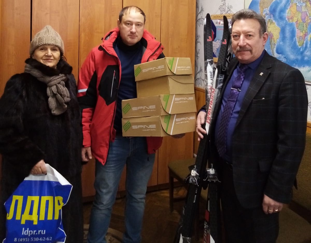 Алексей Петрович отозвался на просьбу директора Демидовской школы № 2 Владимира Калинина. Школа нуждалась в обновлении лыжного инвентаря.