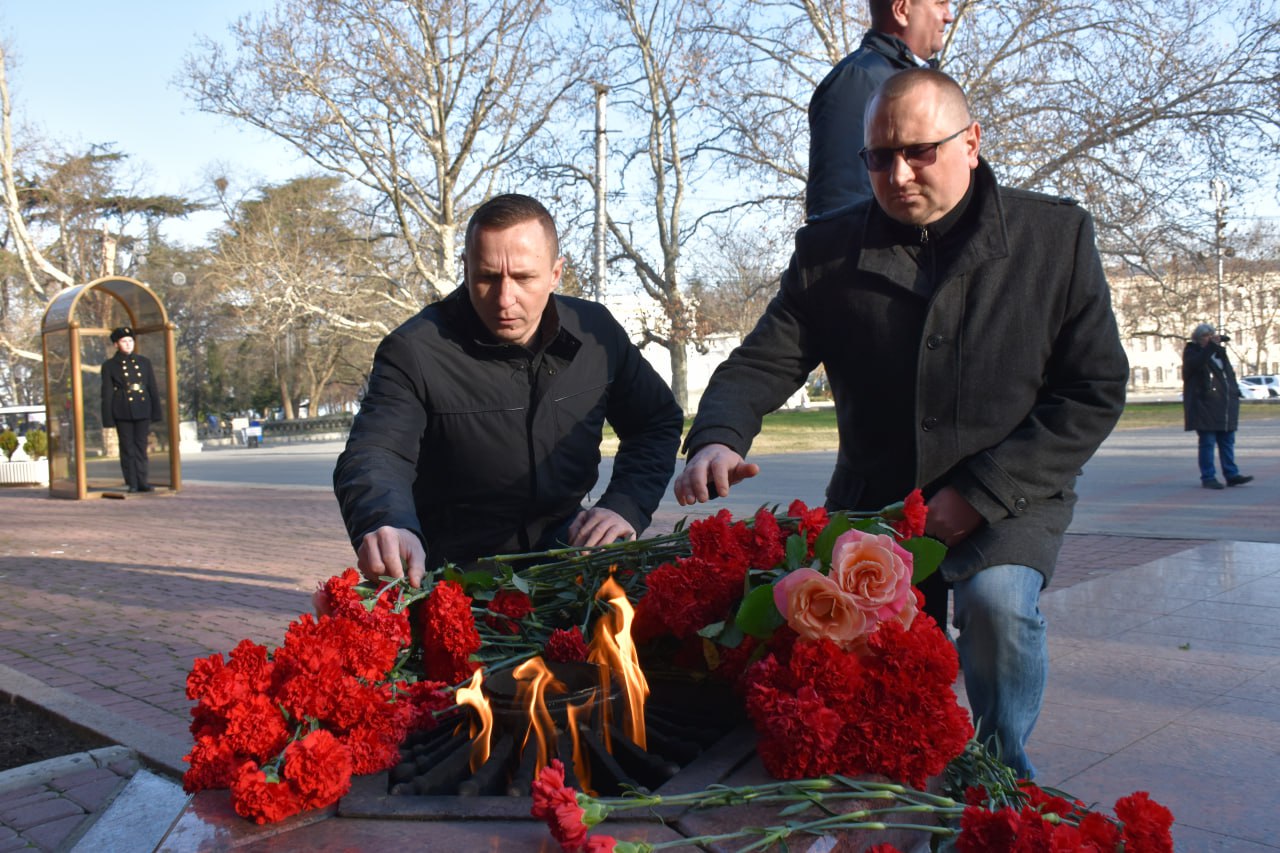 Длительная осада города и страшные испытания голодом, холодом, бомбёжками не сломали ленинградцев. В память об их подвиге депутаты возложили цветы к к Вечному огню у Мемориала героической обороны Севастополя 1941-1942 гг.