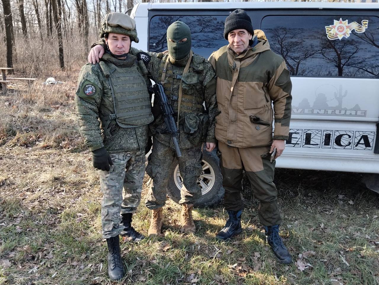 «Мой товарищ случайно увидел видео-обращение ополченца через канал НТВ. Военный просил приобрести легковой транспорт для ведения определенной боевой работы. Именно он, военный с позывным «Ёж», выражает слова благодарности на фото.