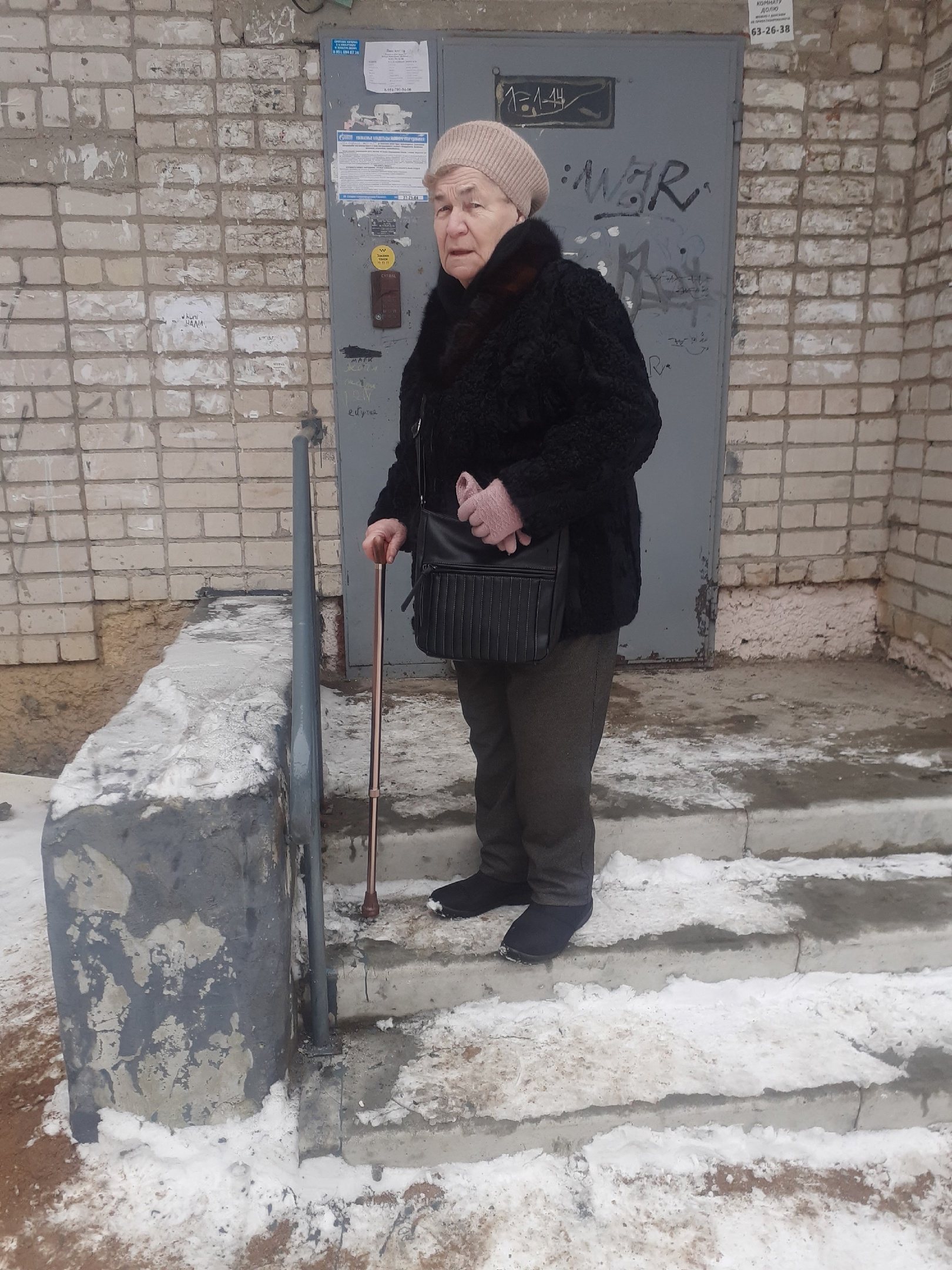 Ситуация в следующем: для пенсионеров, проживающих в доме, спуск по сломанным ступенькам без поручня - целое испытание.