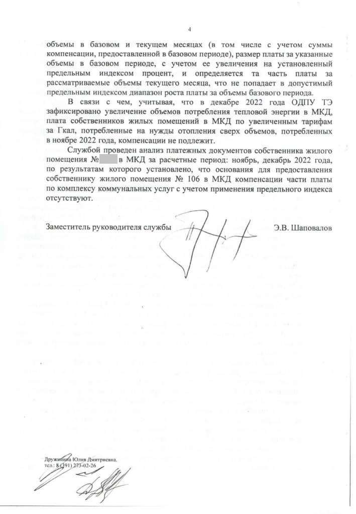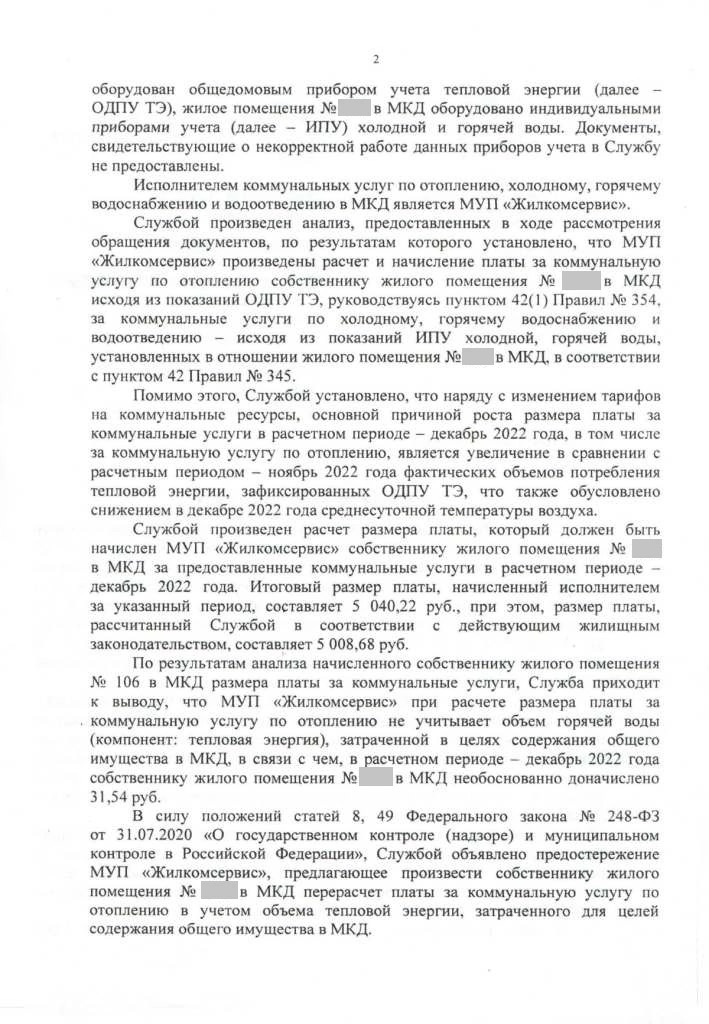 Получен итог проверки правильности начисления платы за отопление собственнику одной из квартир дома № 31 по улице Энтузиастов в Сосновоборске