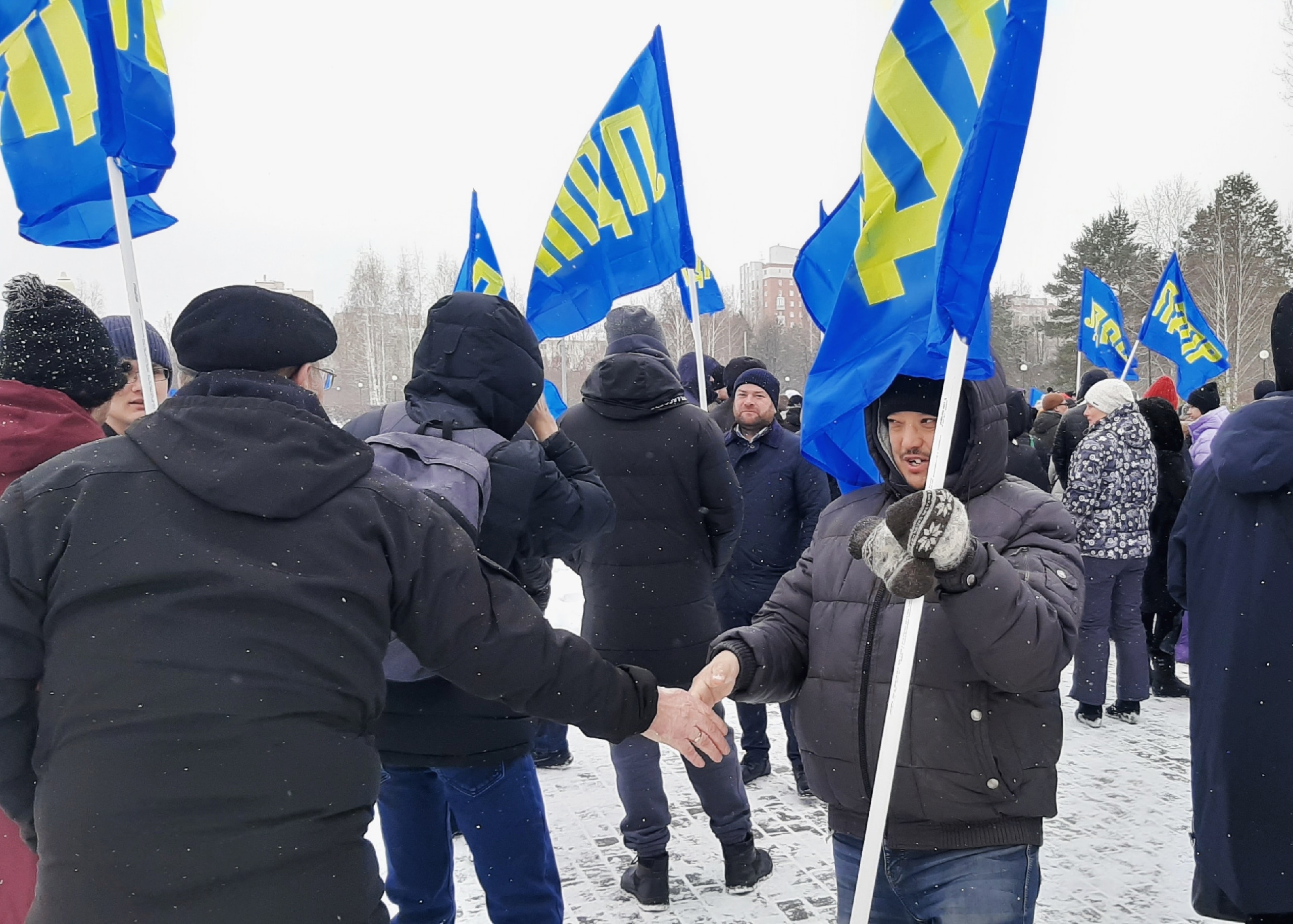 В сквере Депутатов активисты и депутаты провели патриотическую акцию, приуроченную к празднованию Дня защитника Отечества.