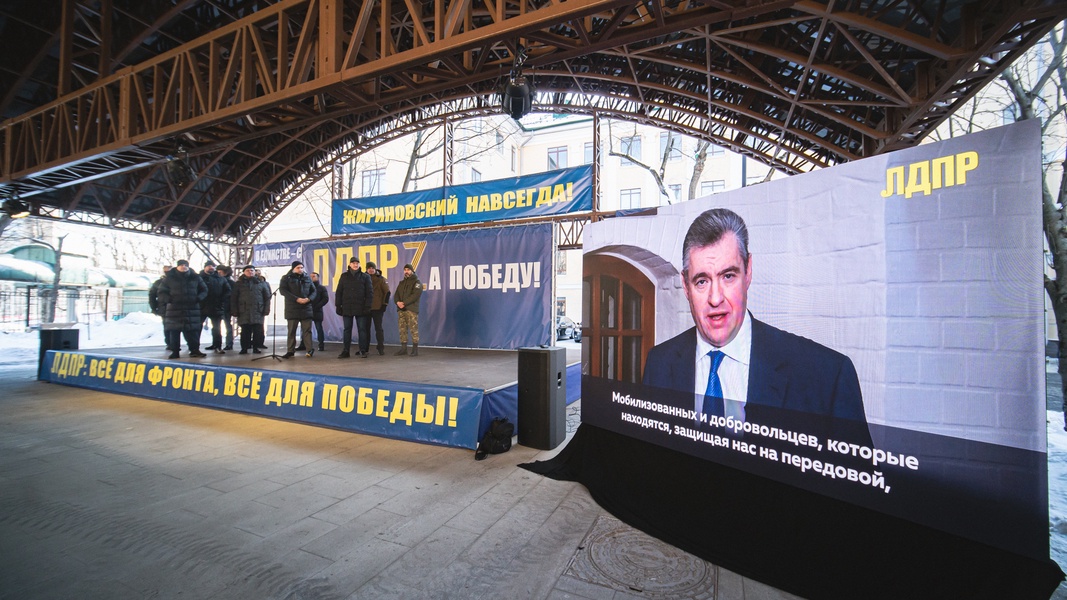 23 февраля ЛДПР провела собрание сторонников по случаю Дня защитника Отечества. Мероприятие прошло на площадке у главного партийного офиса в Москве