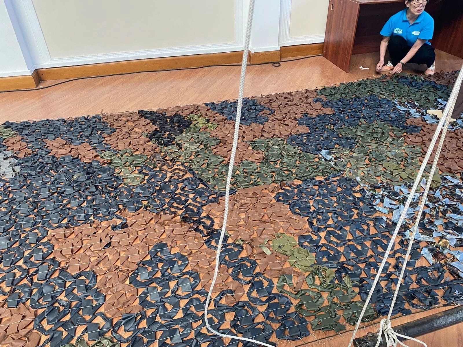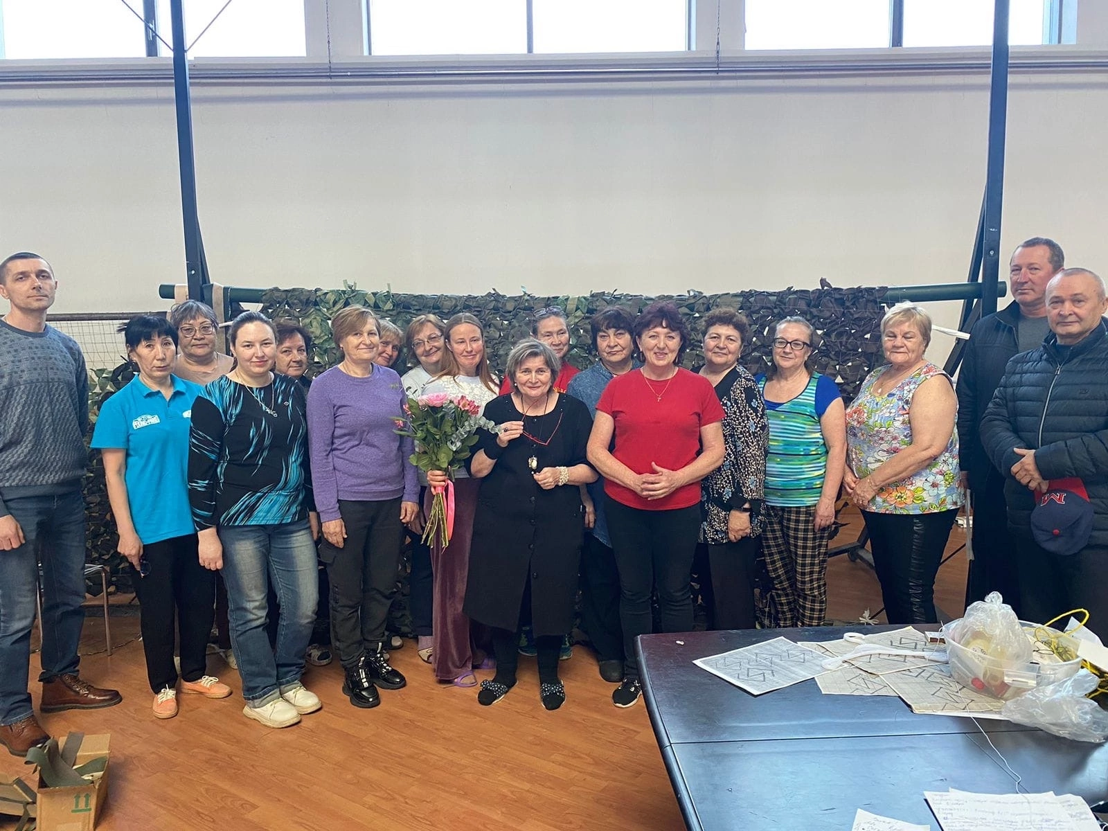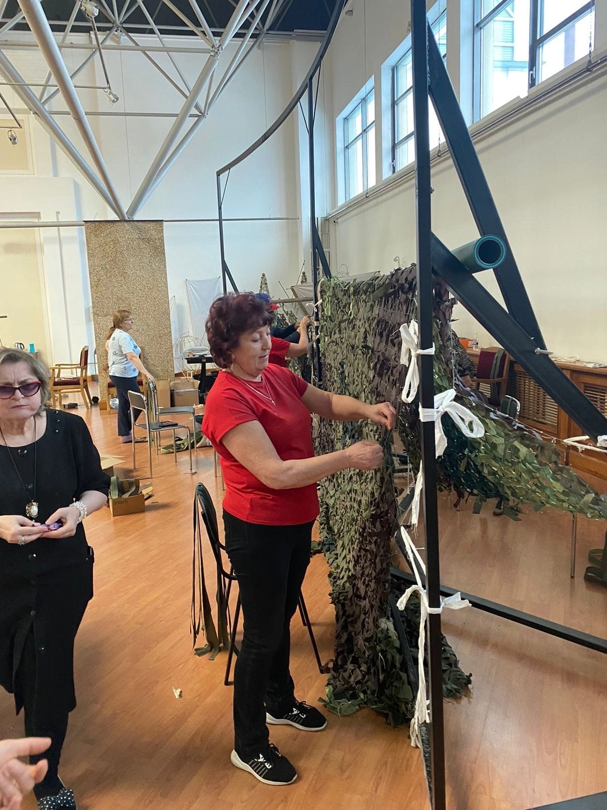 Вместе с Викторией в швейбате сейчас трудятся на благо фронта более 20 женщин, приходят в свободное от работы и домашних дел время. Они шьют для участников СВО нательное и термобелье, маскировочные сети, варежки, балаклавы, повязки, шапки, дождевики. Сейчас они изготавливают и красят маскировочные сетки.