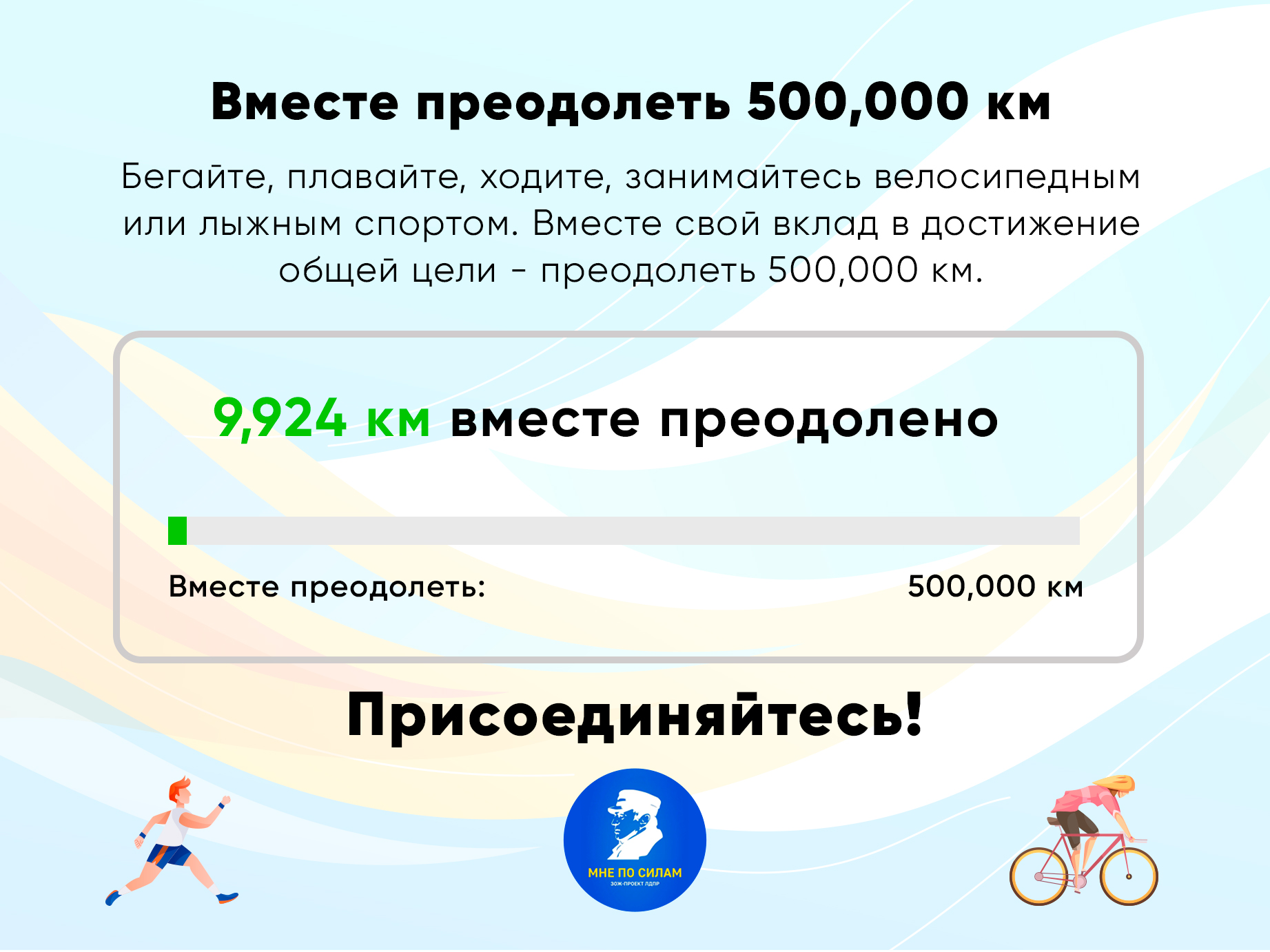 ЗОЖ-проект ЛДПР «Мне по силам!» набирает обороты. На сегодняшний день участники проекта совместными усилиями преодолели уже больше 9,4 тысяч километров