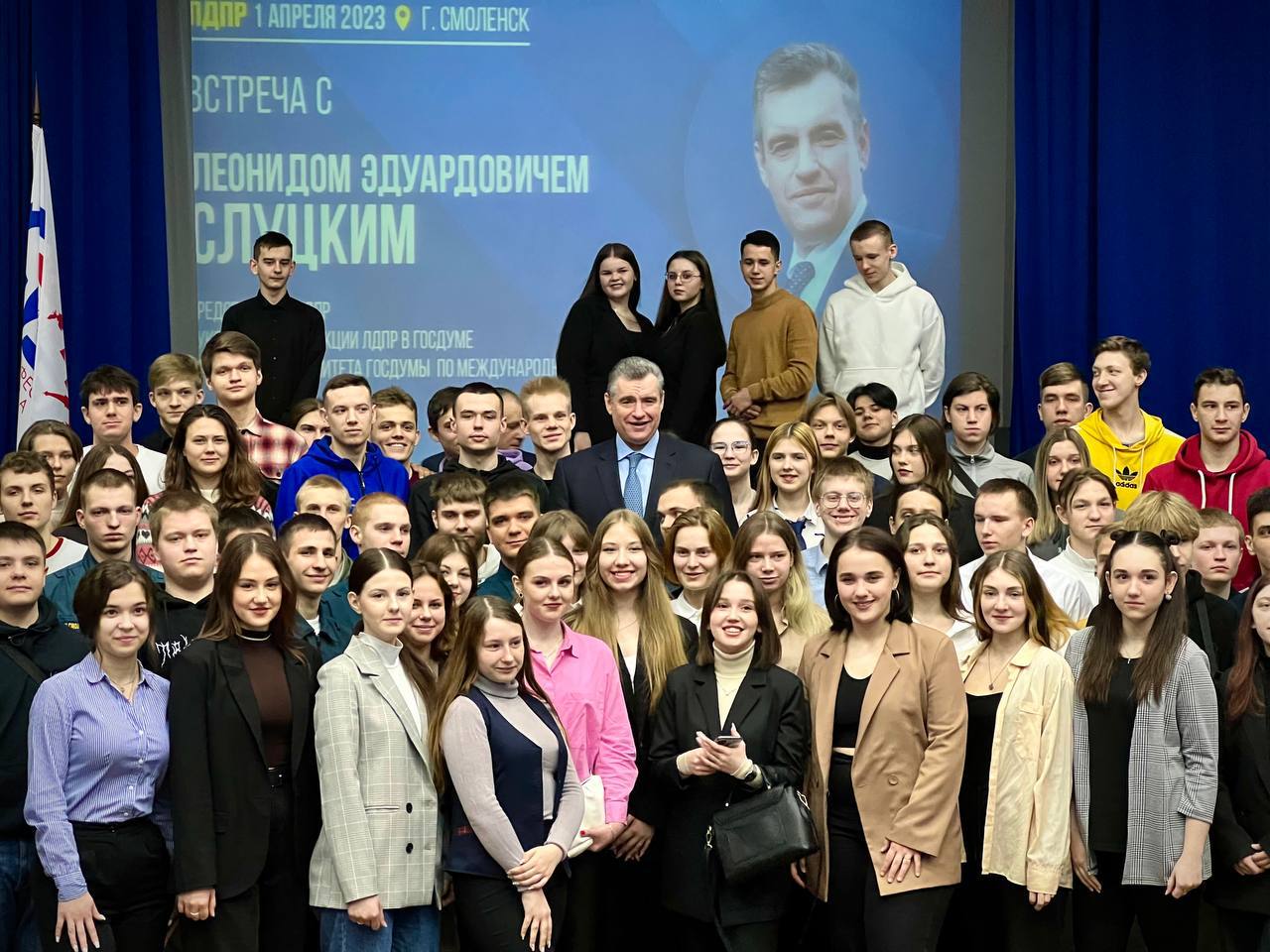 Председатель ЛДПР Леонид Слуцкий встретился с учащимися Смоленской академии профессионального образования. Речь зашла о спецоперации на Украине, предстоящих президентских выборах, проблемах молодёжи, повышении возраста призыва в армию