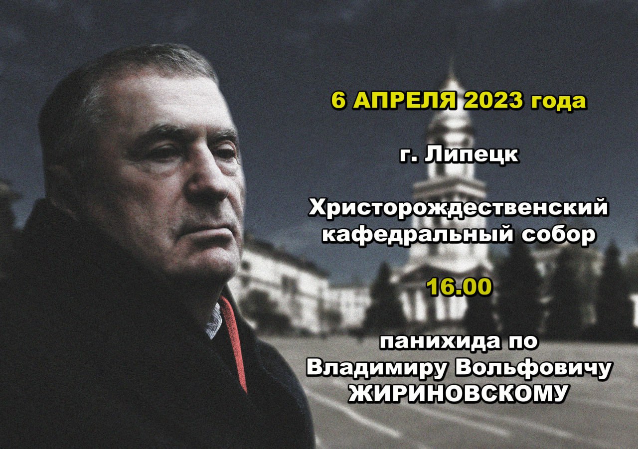 6 апреля в 16.00 в Христо-Рождественском соборе Липецка состоится панихида по Владимиру Жириновскому. Почтить память великого политика могут все липчане, кто помнит и скорбит по Владимиру Вольфовичу.
