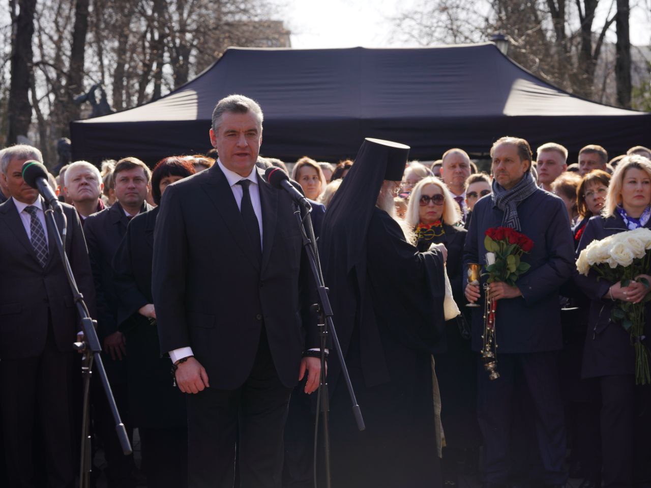 Нам тяжело, но мы осознаем особую ответственность перед Владимиром Вольфовичем и мы уверены, что он сейчас видит нас и действуем так, как он научил нас. И сегодня он жив до тех пор, пока живы его бессмертные идеи, его колоссальное наследие», - отметил Леонид Слуцкий.