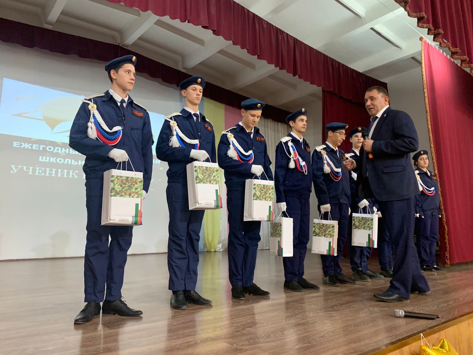 В МБОУ СОШ №1 г. Железноводска прошло ежегодное мероприятие – конкурс "Ученик года - 2023". Депутат ЛДПР Александр Лапшин подарил команде зарничников берцы