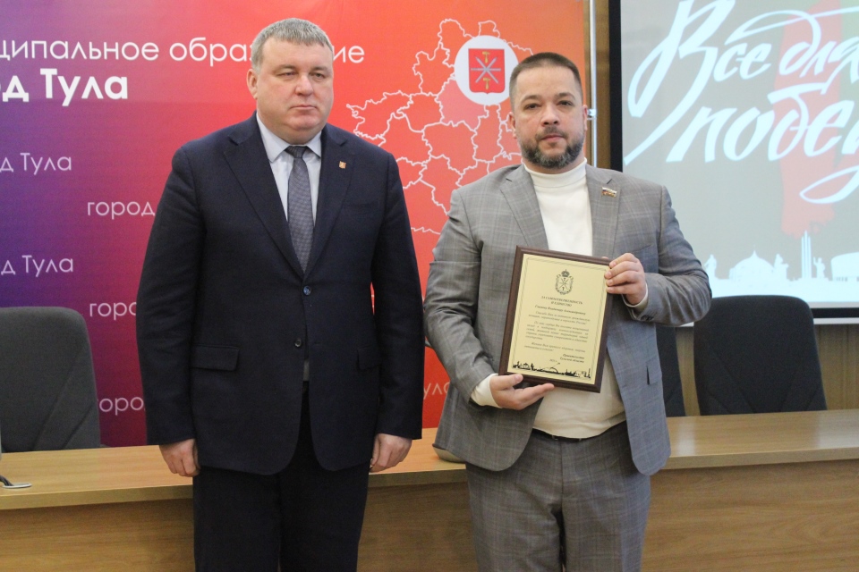 Депутату ЛДПР Тульской городской думы Владимиру Глазкову вручили награду за самоотверженность и единство и активное участие в оказании помощи и поддержки участникам СВО и их семьям