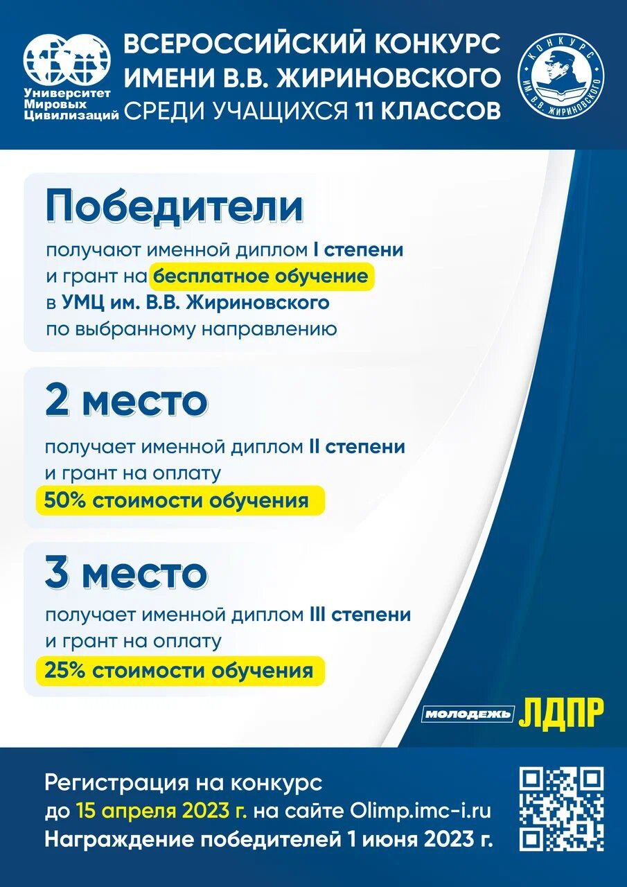 Внимание, абитуриенты! Подать заявку на конкурс имени Владимира Жириновского можно до 25 апреля!