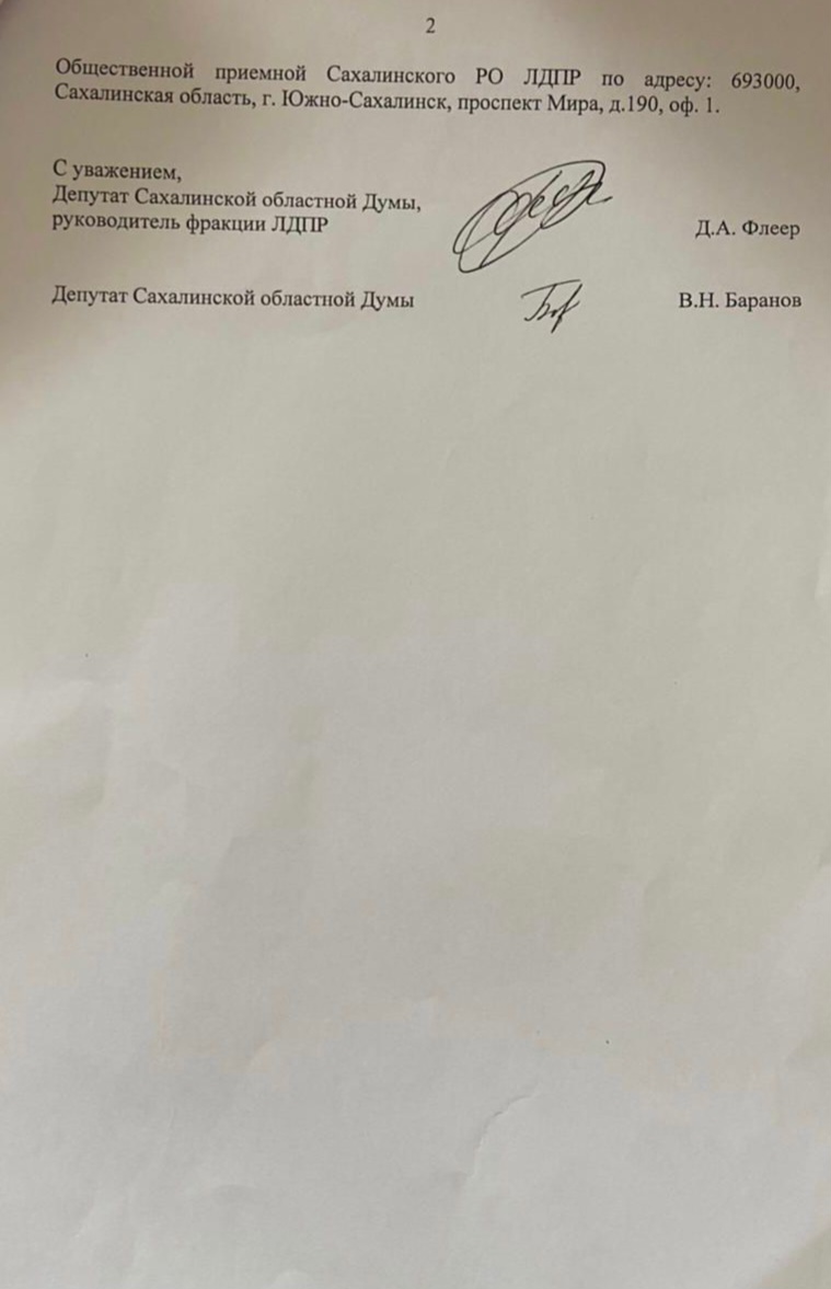 Депутат областной Думы от фракции ЛДПР Виталий Баранов благодарит и выражает огромную признательность администрации города Южно-Сахалинска за увековечивание памяти Владимира Жириновского.