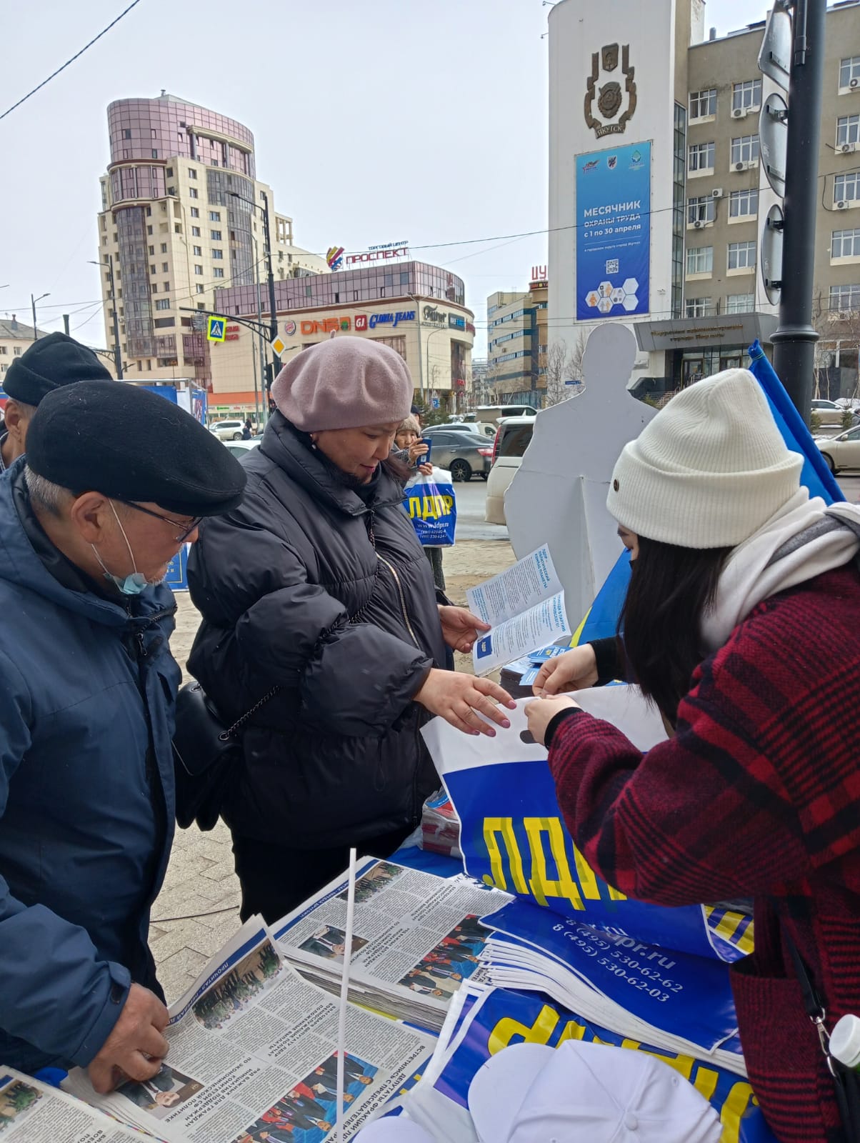 Все желающие получали от активистов в подарок свежий номер газеты «ЛДПР в Якутии» и атрибутику ЛДПР: чай пакетированный, бейсболки, футболки, тетради, календари. Детям и молодежи после правильного ответа на викторину вручали шарики. Вопросы были такие: «Как расшифровывается аббревиатура ЛДПР?», «Кто основатель партии?», «В каком году была основана ЛДПР?» и т.п. Молодое поколение выстраивалось в очередь, всем было очень интересно поиграть в игру и получить приз. Те, кто не знал правильного ответа, искали подсказки на баннерах фотовыставки.